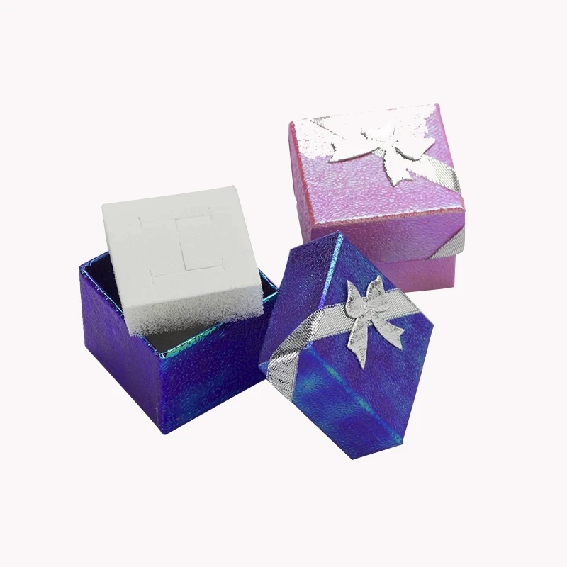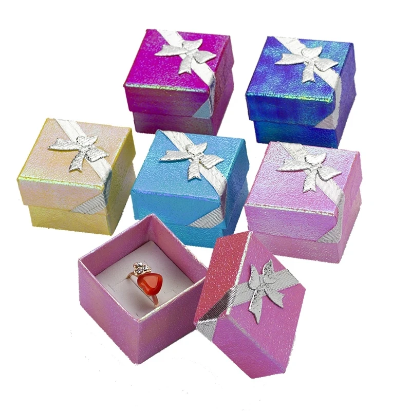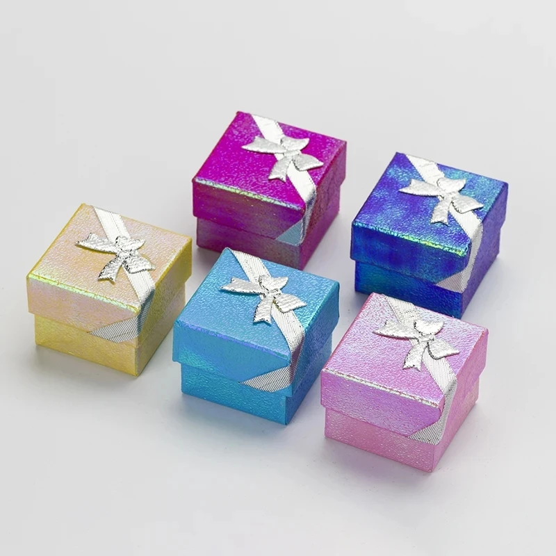 120pcs/lot Paper Jewelry Box Multi Colors Laser Ring Boxes Fashion Ribbon Pendant Earrings Box 4*4*3 Display Packaging Gift Box - Купить с бесплатной доставкой