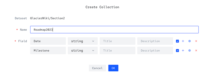 4️⃣ Create Collection: колекція є одиницею третього рівня в Glacier. Колекція схожа на таблицю, і вам спочатку потрібно назвати та налаштувати колекцію. Щоб вам було легше, під час налаштування полів колекції виконайте налаштування, наведені нижче на знімку екрана.