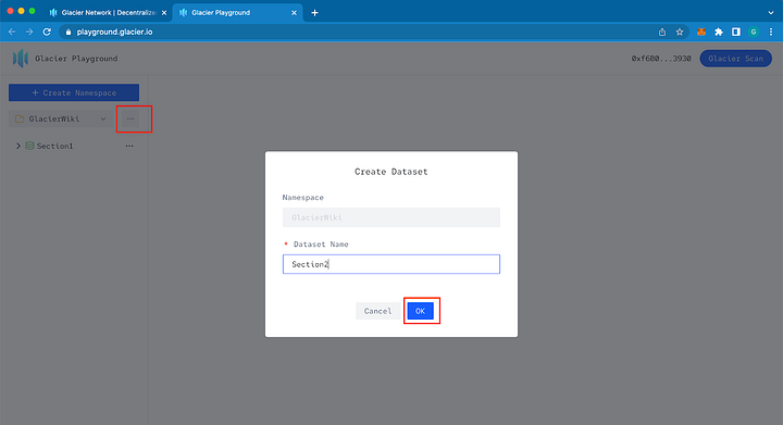 3️⃣ Create Dataset: набір даних є другорядною одиницею в Glacier. Щоб створити набір даних, натисніть «кнопку з крапками».