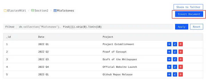 Бази даних Glacier Network представляють незмінну спільну історію. Наша програма винагород включає тему — Створіть свій перший незмінний набір даних. Ми заохочуємо вас особисто відчути подорож до компонування програмованих даних, і це починається зі створення вашої першої децентралізованої бази даних на Glacier Testnet.