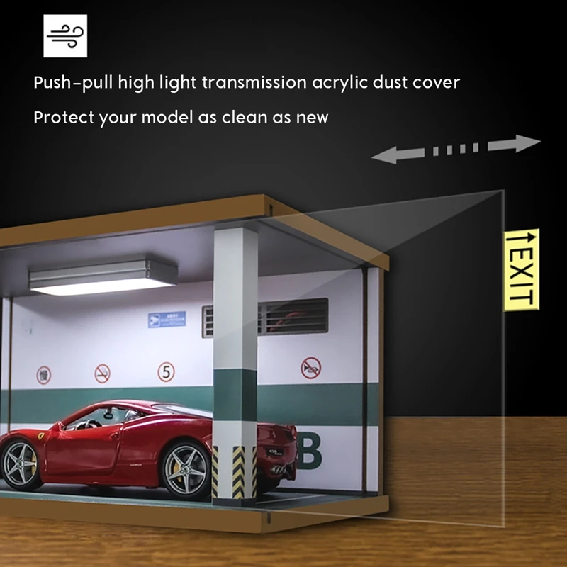 1:24 Scale Simulation Car Garage Model Parking Lot Model Scene Acrylic Display Cabinet With Light Decoration Display - Купить с бесплатной доставкой