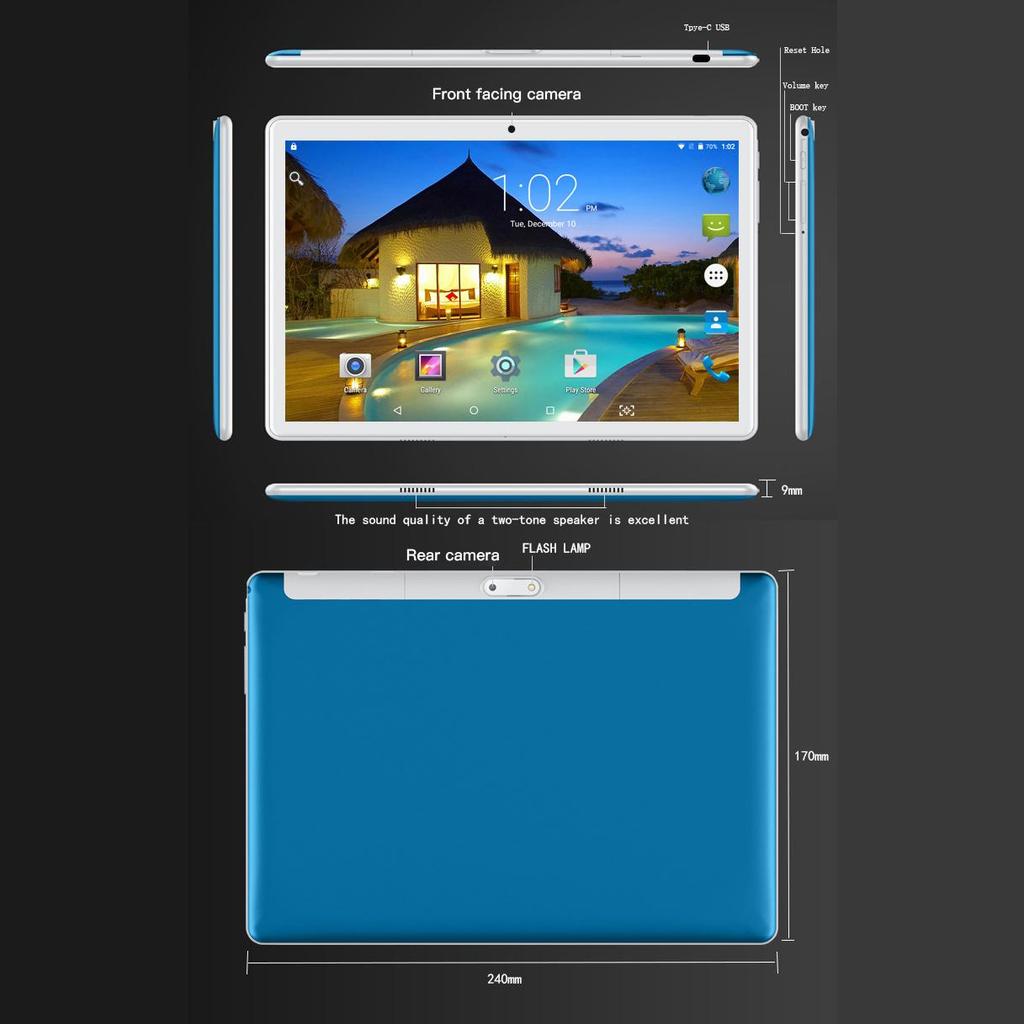 Большой и красочный дисплей 10 .1 дюйма, 6 gb оперативной памяти и 128 gb встроенной, 8-ядерный процессор, слот для сим-карты, навигация gps, две качественные камеры: 5 и 8 мегапикселей .
