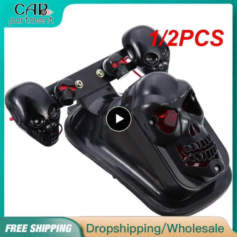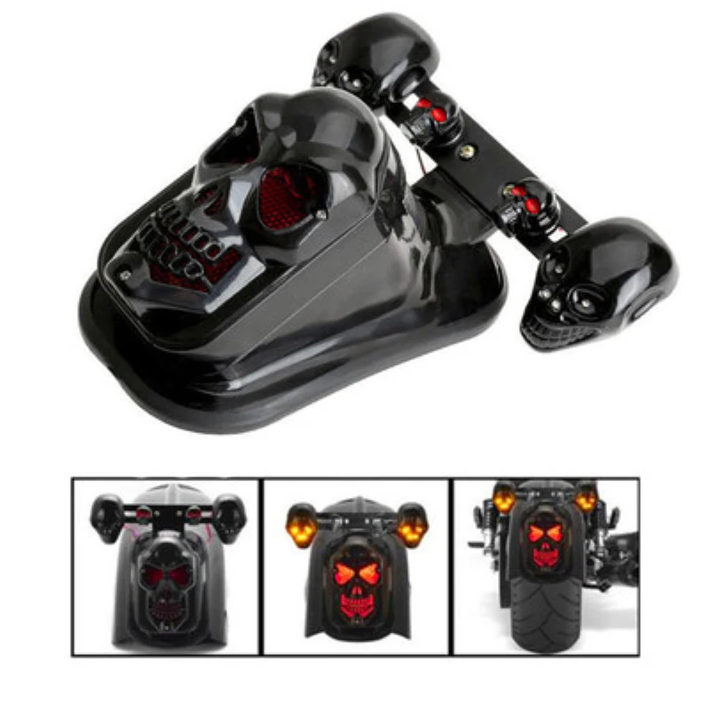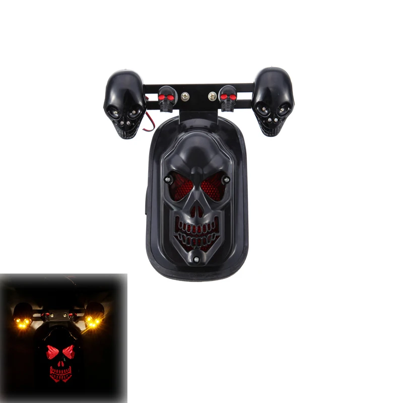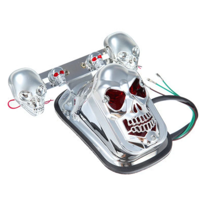 KbPuTlRjHere you can buy 1/2PCS Motorcycle Skull Taillight With Turn Signal Rear Brake Light Black Chrome Skeleton Style Modified Blinker Indicator Light with free delivery to your post office.