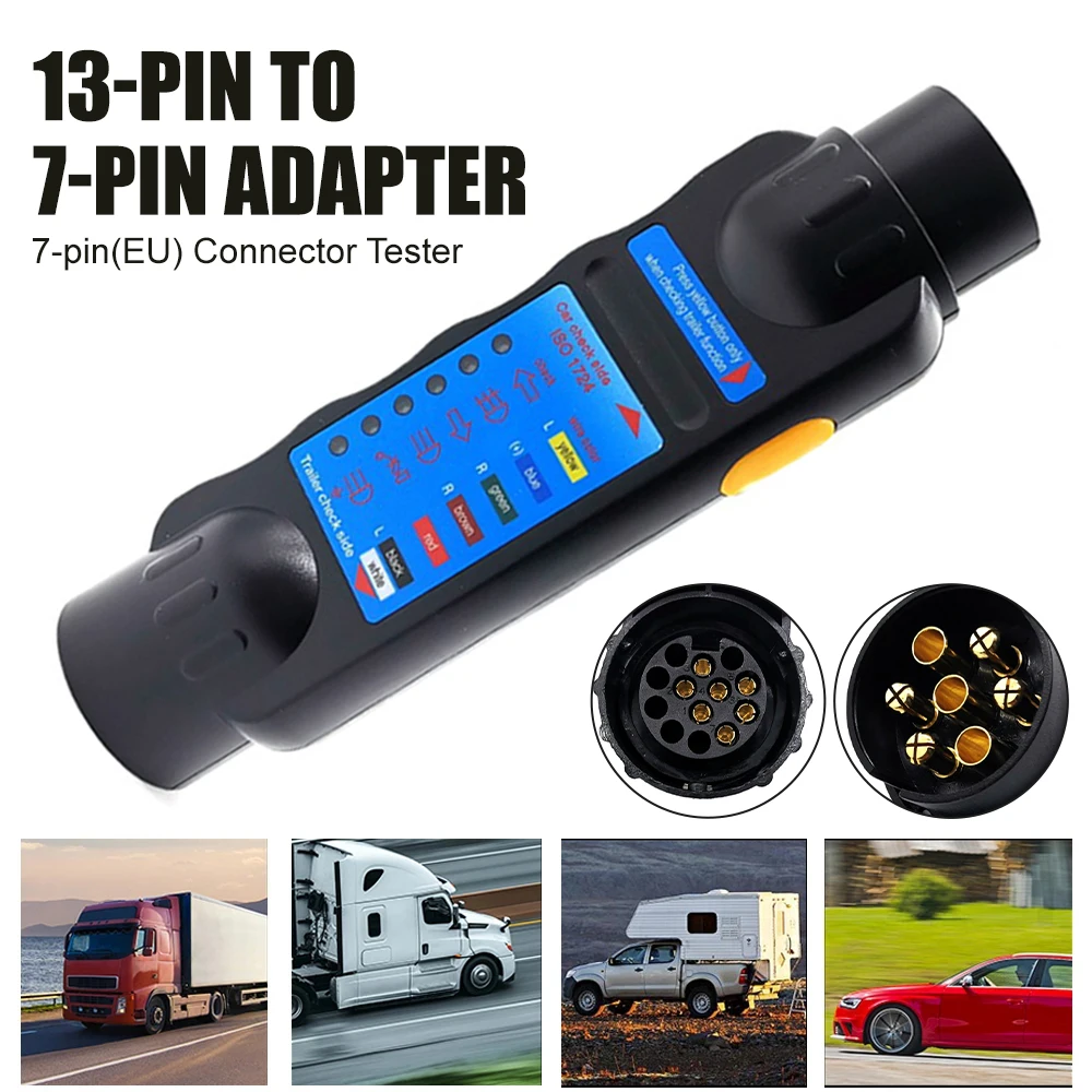 bQPenvPkЗдесь вы сможете купить 12V 7Pin Car Trailer Tester Plug 7pin to 13pin Adapter RV Towing Light Cable Circuit Connector Tester Electrical Diagnostic Tool с бесплатной доставкой до вашего почтового отделения.