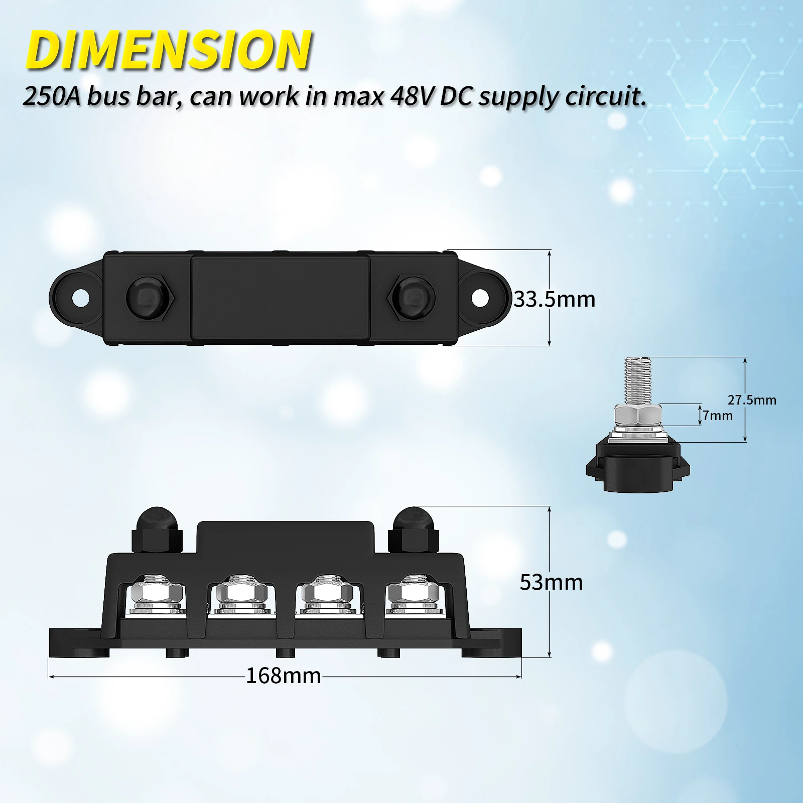 AHAKYNlwLooked for 12V Power Distribution Block 250A Bus Bar Terminal Block with Cover 4 x 3/8" Terminal Studs 3 x #8 Terminal Screw 48VDC 300VAC for a long time, but could not find it? Bring to your attention 12V Power Distribution Block 250A Bus Bar Terminal Block with Cover 4 x 3/8" Terminal Studs 3 x #8 Terminal Screw 48VDC 300VAC with the best price!