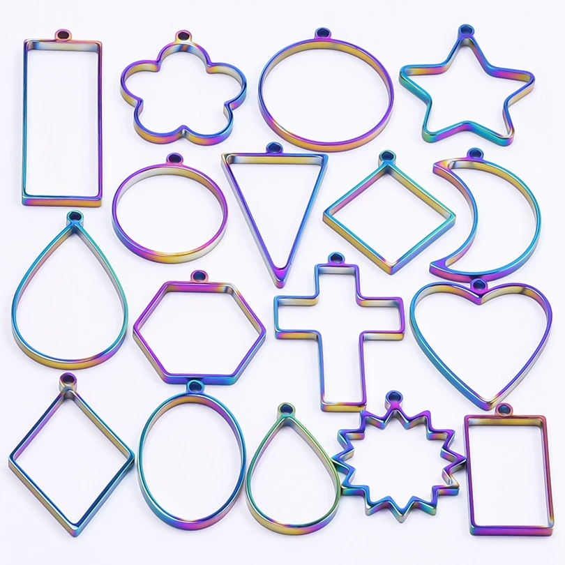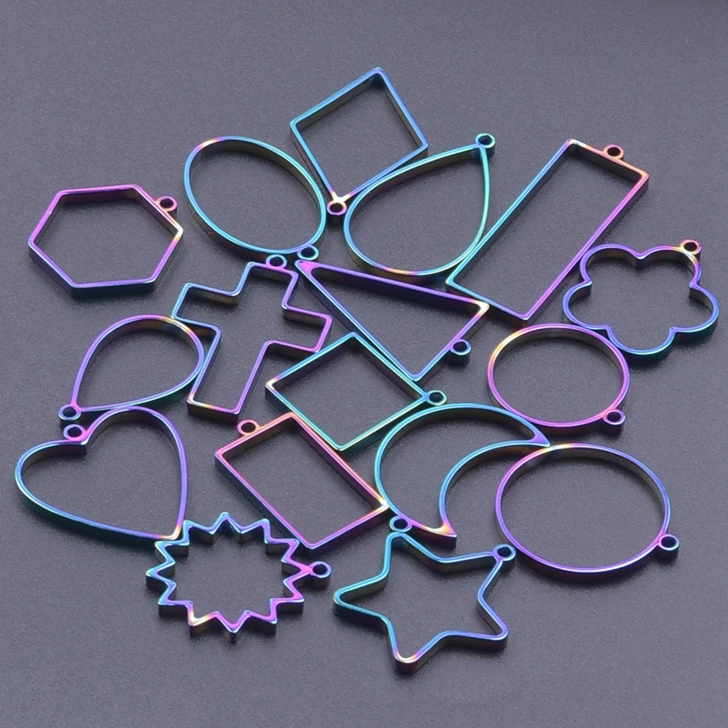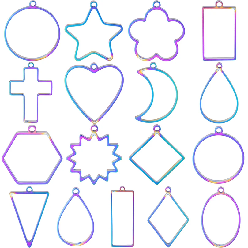 12pcs Rainbow Color Assorted Geometric Hollow Pressed Flower/Heart/Water Drop Frame Pendant Resin Jewelry Making Tool Bezel Mold - Купить с бесплатной доставкой