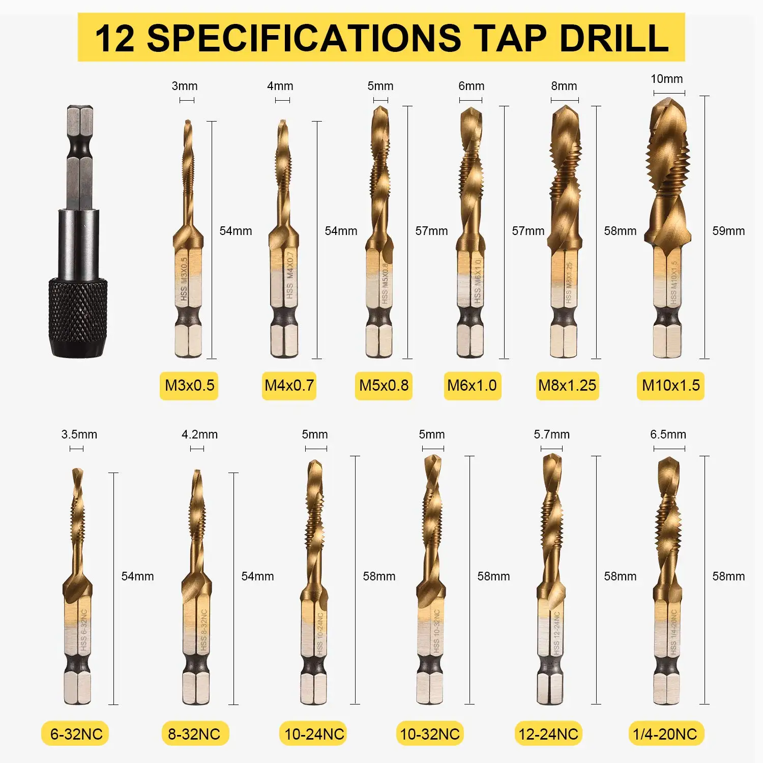 rjgkOomPkkHere you can buy 13 PCS Combination Drill and Tap Bit Set with Quick Change Adapter SAE/Metric Titanium Coated Screw Tapping Bit Tools with free delivery to your post office.
