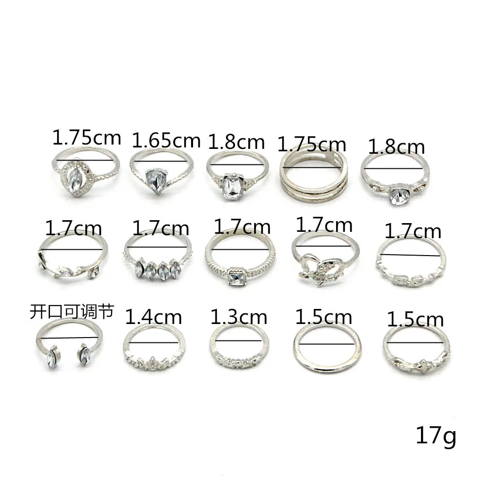 «13 Pieces/Set Female Rings Rings Diamond Retro Rings Set» по лучшей цене на рынке! Всего за 4$ (380рублей)