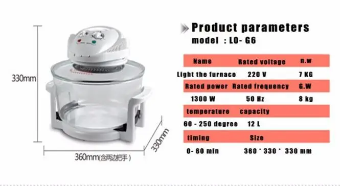 YyKqsBLdETLooked for 1300W Halogen Oven 12L Turbo Oven 220V Conventional Infrared Super Wave Oven Electric Fryer LO-G6 for a long time, but could not find it? Bring to your attention 1300W Halogen Oven 12L Turbo Oven 220V Conventional Infrared Super Wave Oven Electric Fryer LO-G6 with the best price!