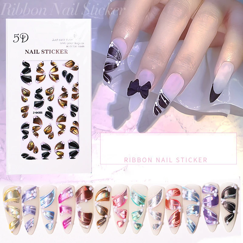 "1/3/5/10Sheet Ribbon Designs Nail Art Stickers Fairy Embossed Nails Sticker Glitter Self-Adhesive Charm DIY Manicure Decorations" * Buy Now Just For 2$