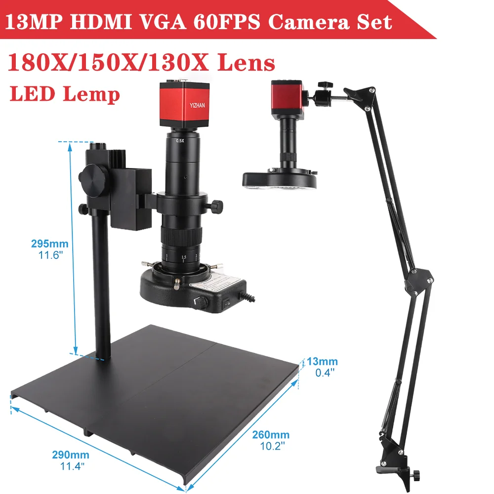 "13MP Camera Microscope CCD Adjustable HD Display 180x/150x/130x Lens Industrial Electron Microscopes Multiple Support Set Repair" * Buy Now With Free Shipping Just For $112