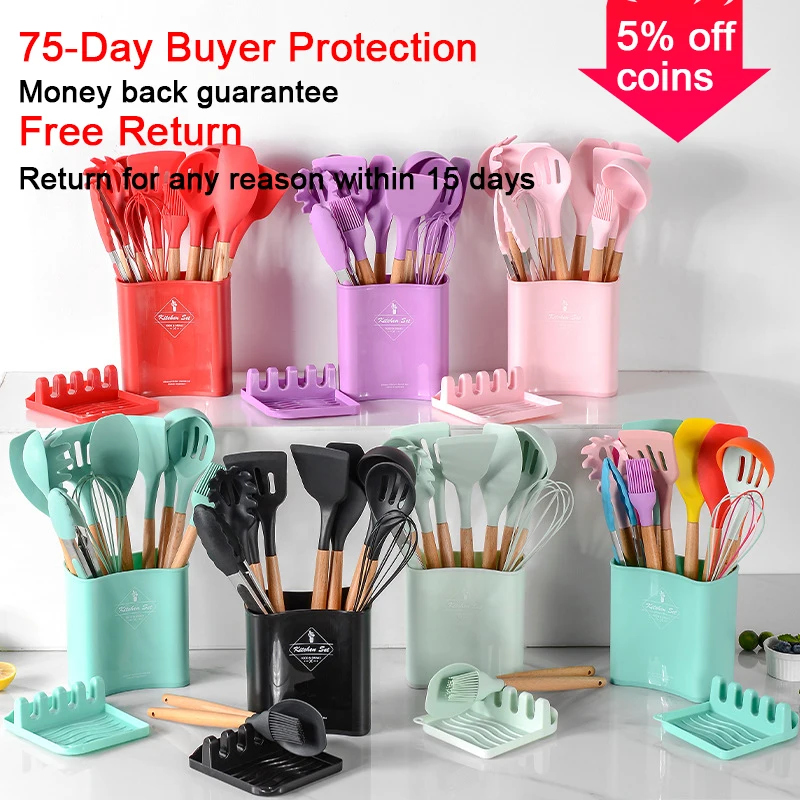 mqVlvwWHmЗдесь вы сможете купить 13PCS Spoon Silicone Utensils Kitchen Kit For Kitchen Gadget Sets Non Slip Wooden Handle Cooking Shoe Set Kitchenware Gadgets с бесплатной доставкой до вашего почтового отделения.