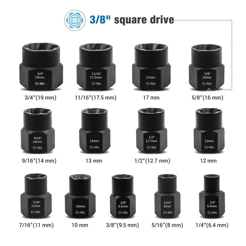 nJrjQipNuIHere you can buy 13pcs Bolt Extractor Set Car Wheel Nut Socket Install Removal Tool Stripped Damaged Bolt Nut Removal Extractor Socket Tool with free delivery to your post office.
