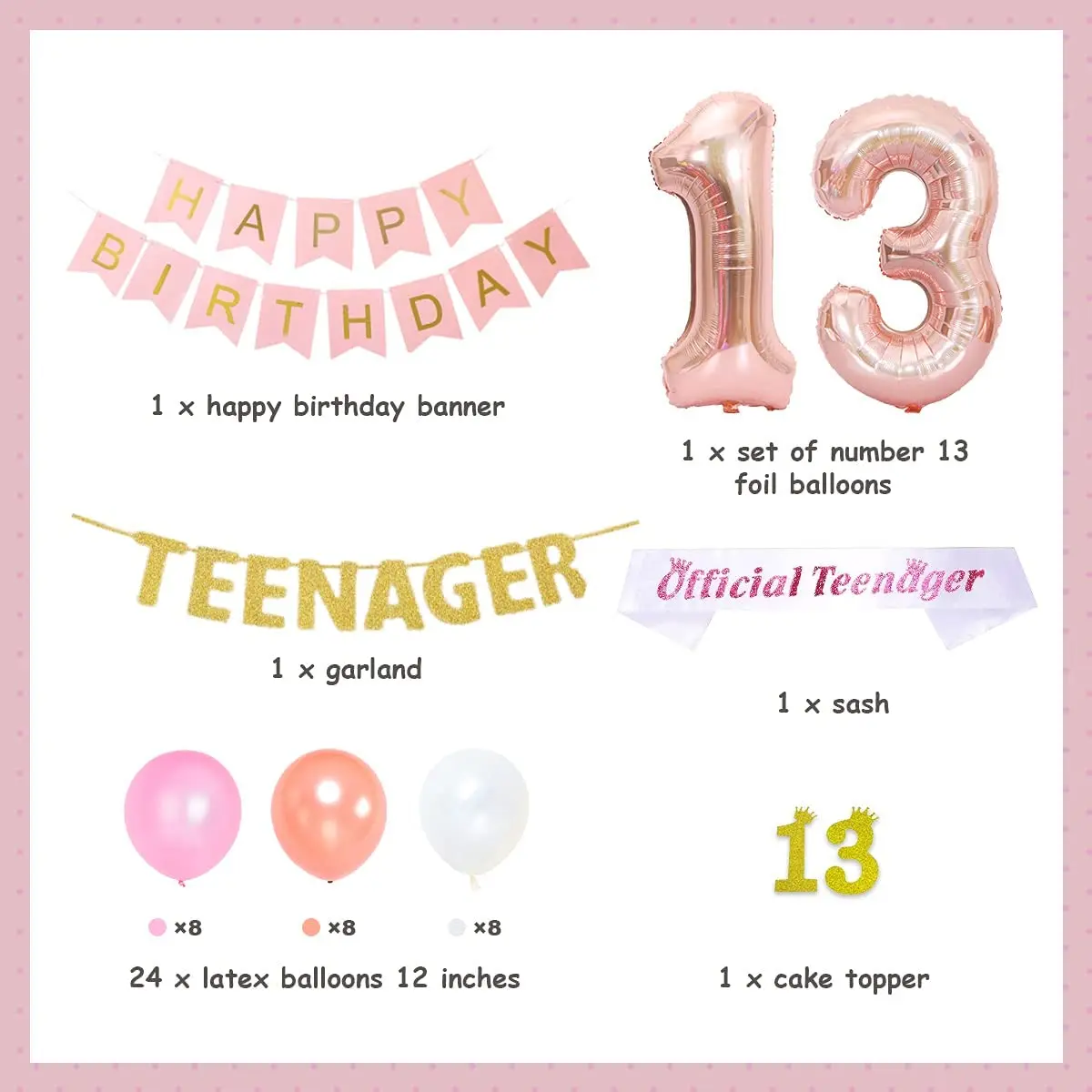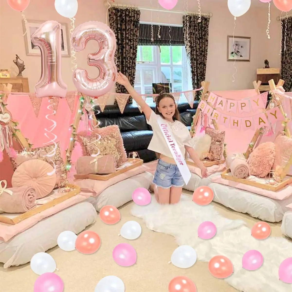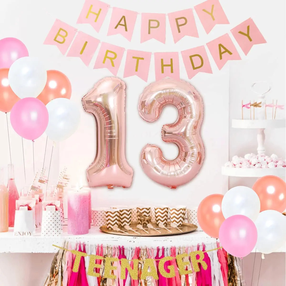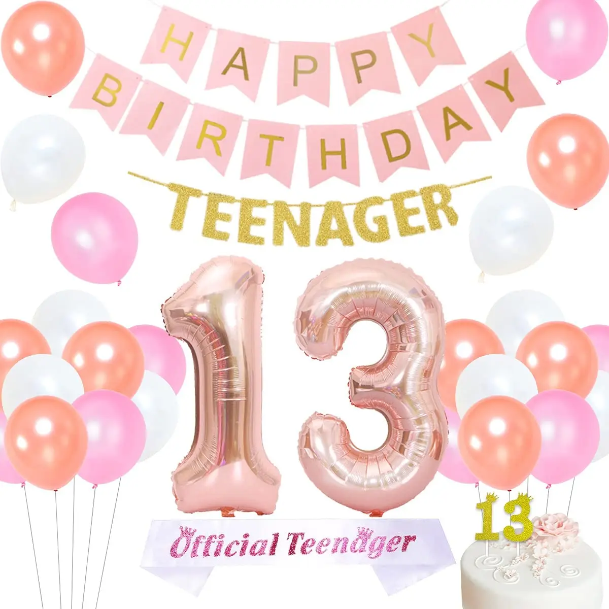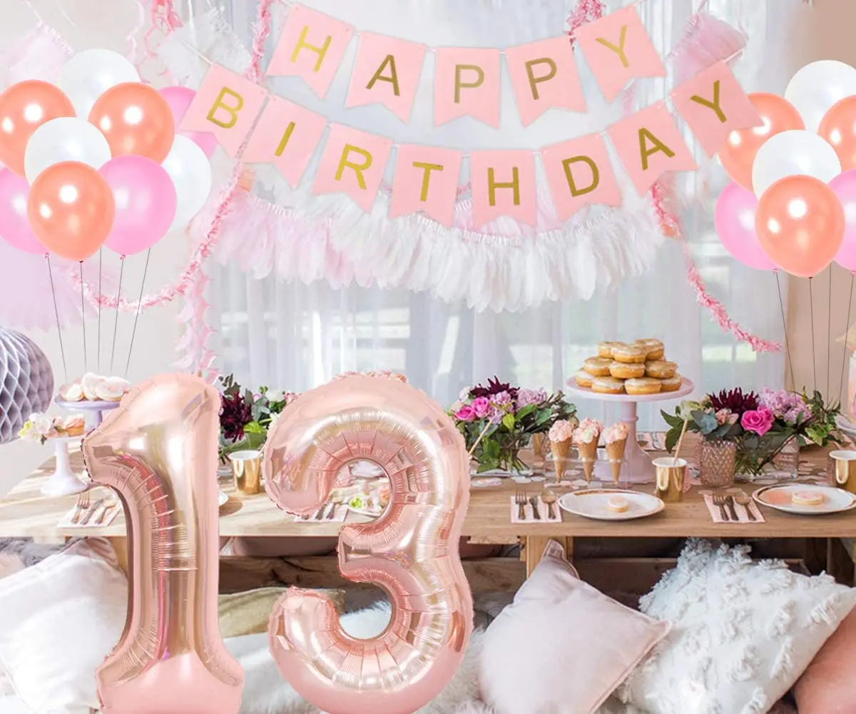 «13th Birthday Party Decorations for Girls Supplies Rose Gold Sash Teenager Garland Happy Birthday Banner Number 13 Foil Balloon» по лучшей цене на рынке! Всего за 14$ (1330рублей)