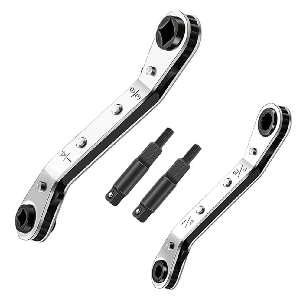 "1/4-3/16-5/16-3/8 Air Conditioner Valve Ratchet Wrench With 2 Hexagon Bit Adapter Kit For Air Refrigeration Tools" * Buy Now Just For 17$