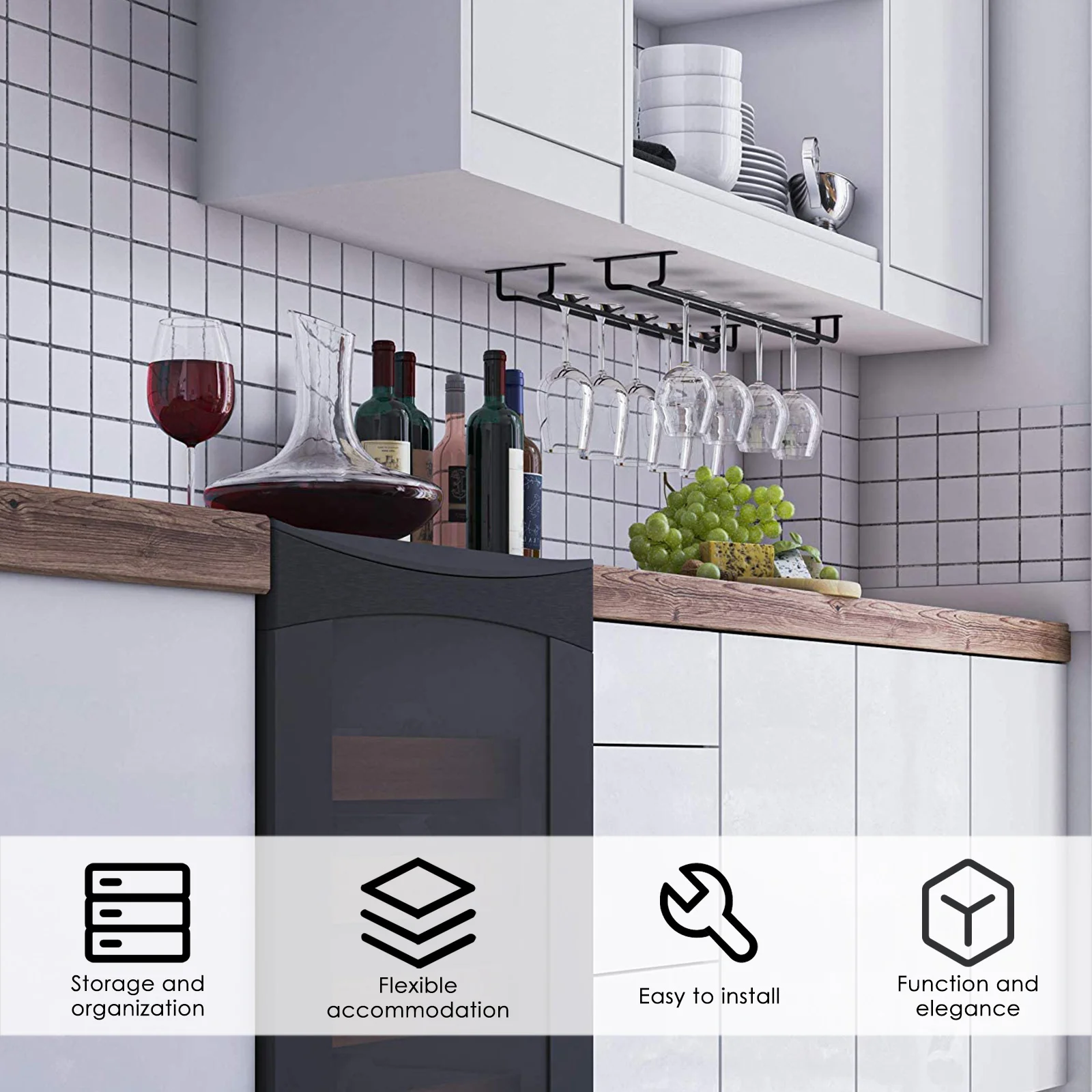 kgWaOcmmЗдесь вы сможете купить 14-Inch Black Wine Glass Rack Glass Holder Hanging Bar Hanger Shelf Stemware Rack Hanging For Cabinet Kitchen Bar с бесплатной доставкой до вашего почтового отделения.