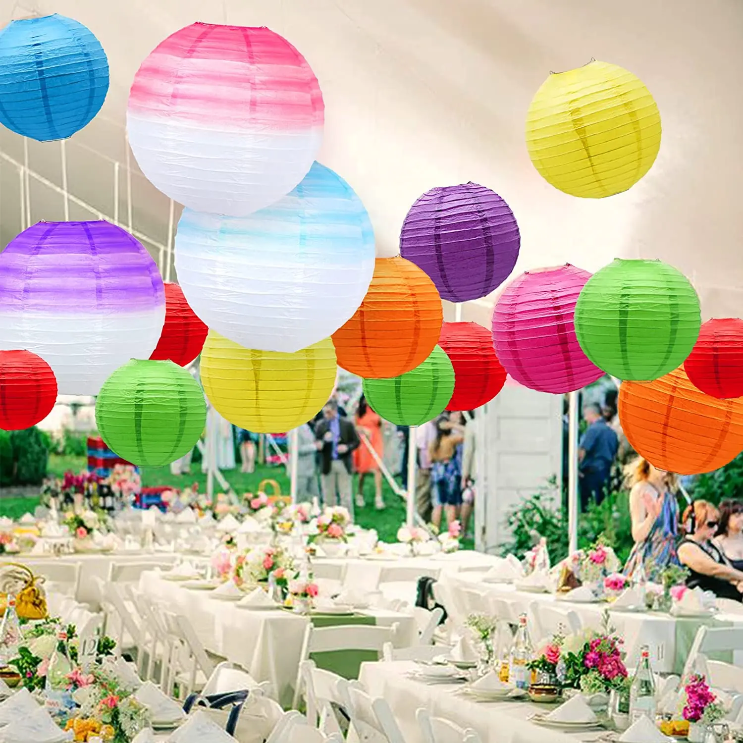 «14 PCS Gradient Colorful Colors Round Paper Lanterns Decorative Lamps Chinese Tissue Paper Lanterns Indoor Room & Outdoor Party» по лучшей цене на рынке! Всего за 22$ (2090рублей)