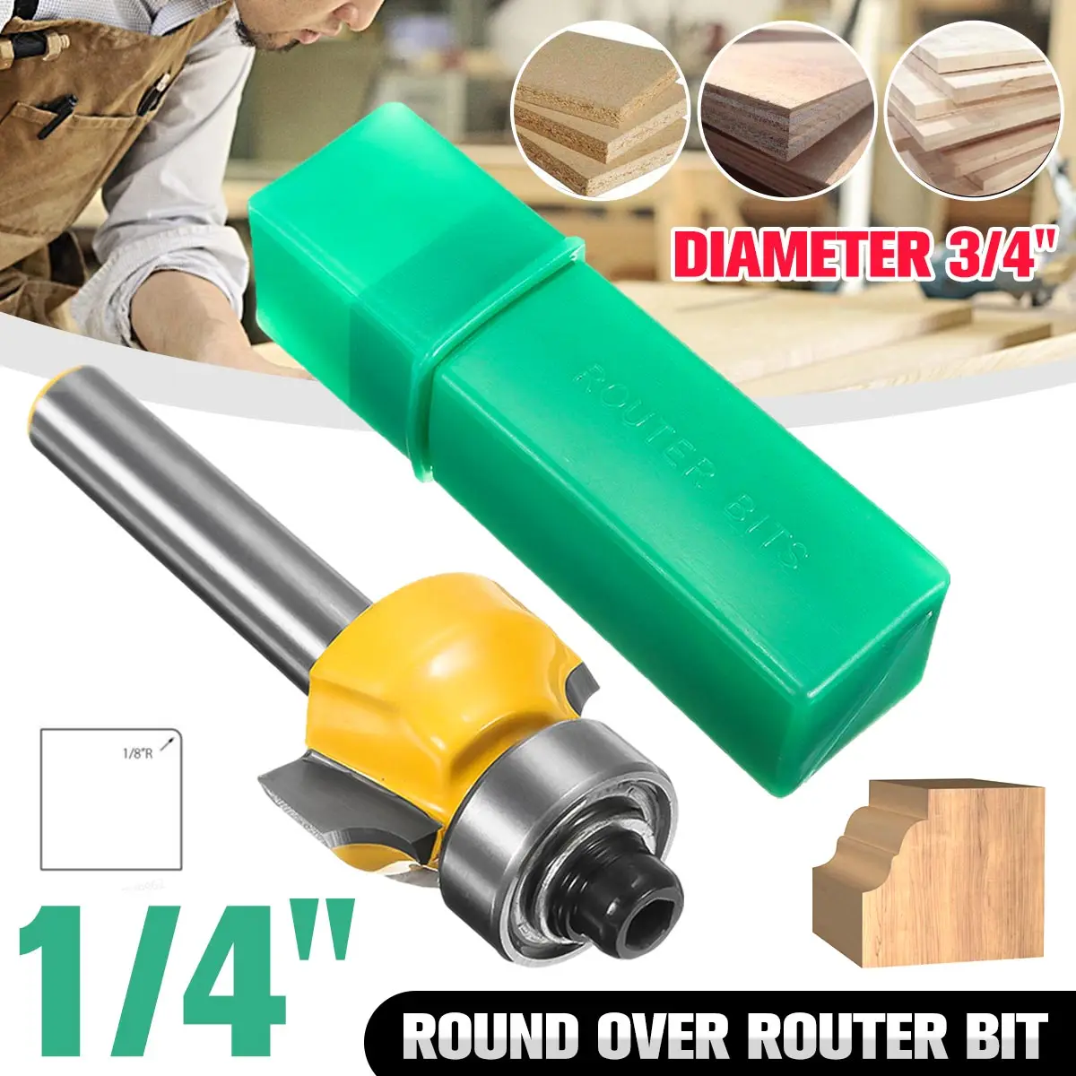 1/4'' Shank Round Over Router Bit 1/8'' R 3/4'' Diameter 2'' Length Woodworking Milling Cutter Tool - Купить с бесплатной доставкой
