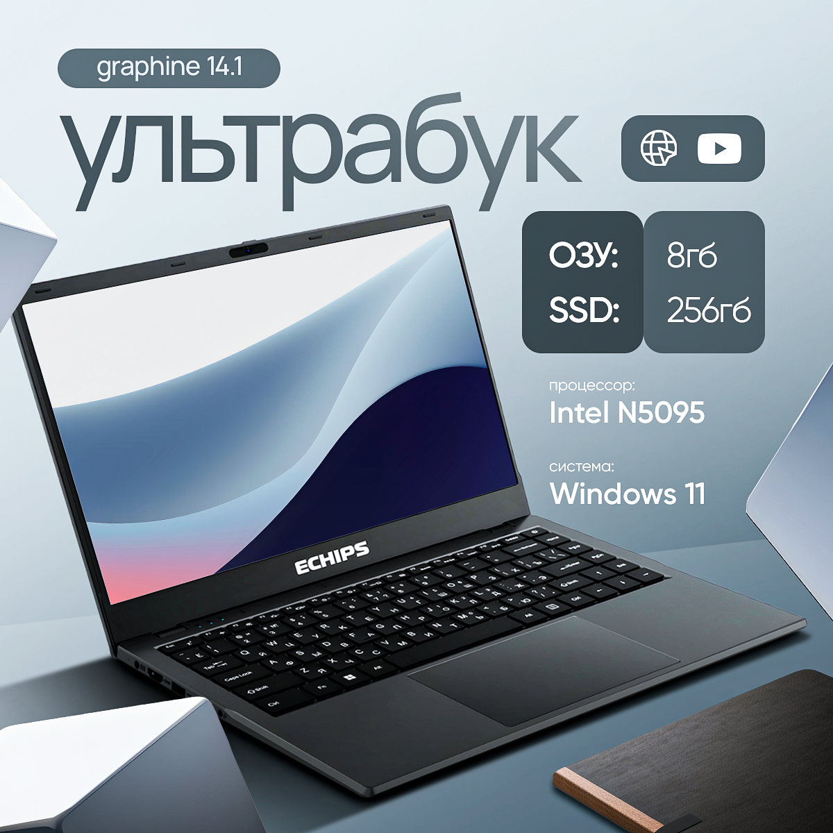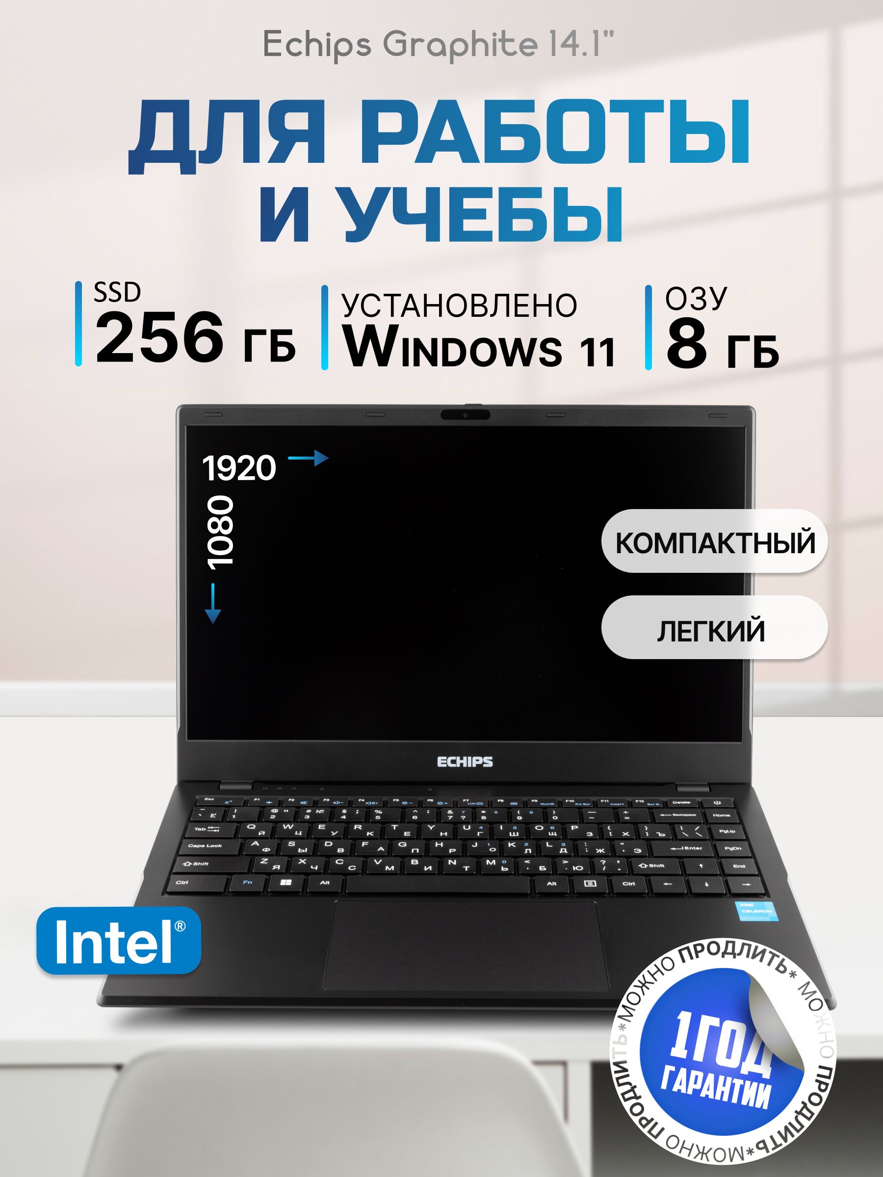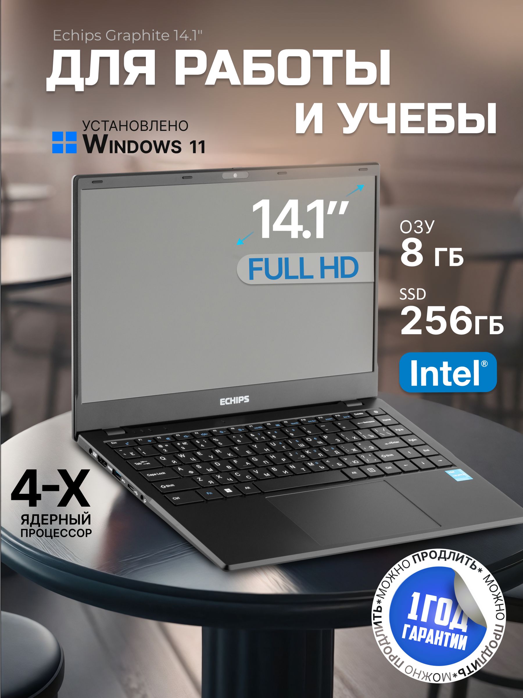 14.1 ноутбук echips travel intel celeron