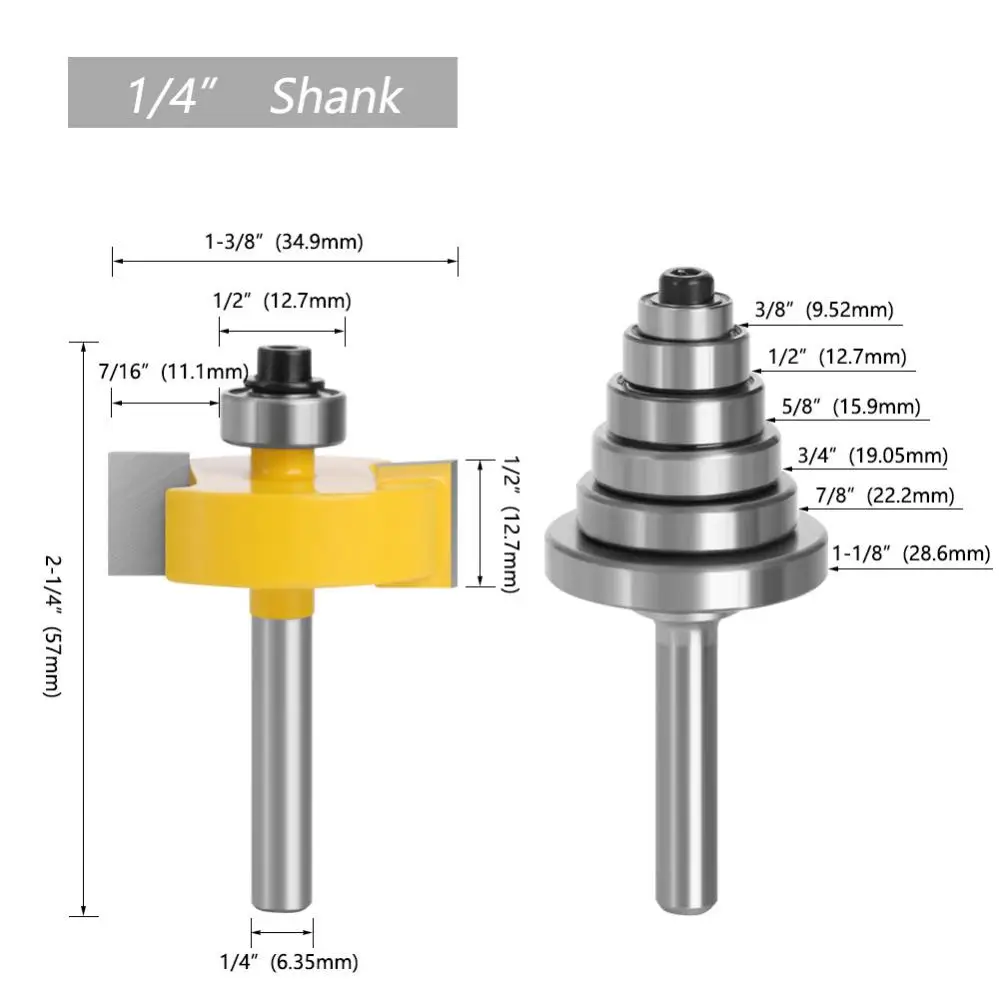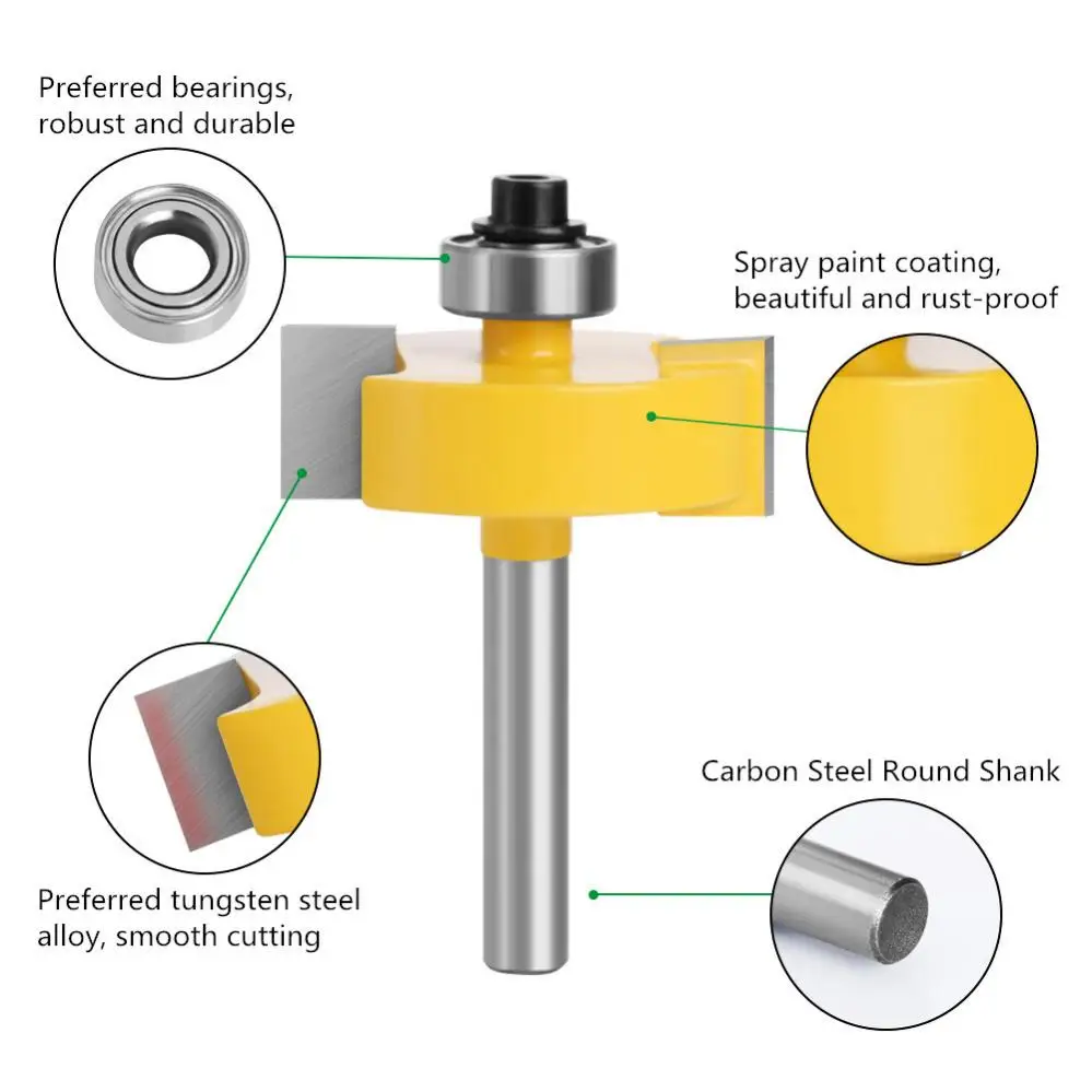MIRSJFcvHere you can buy 1/4inch Shank Carbide Rabbet Router Bit for Woodworking with 7 Bearings Tungsten Alloy Slotting Router Bit Set Dense Measurement with free delivery to your post office.