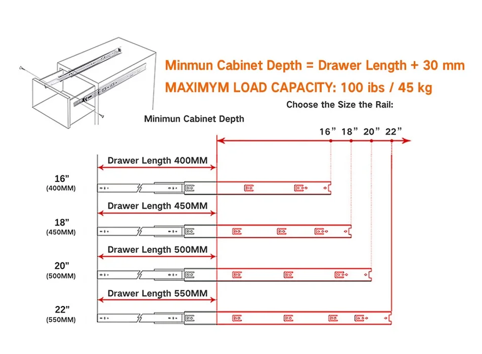 "15 Years OEM Factory Ball Bearing Drawer track slide three rail guide Runner Full Extension furniture hardware in Black 2 pieces" * Buy Now Just For 29$