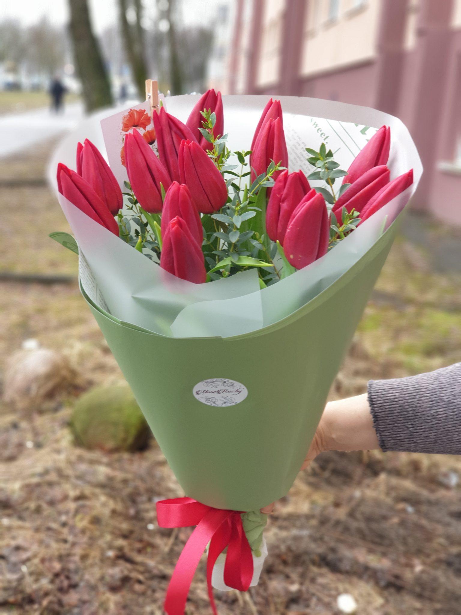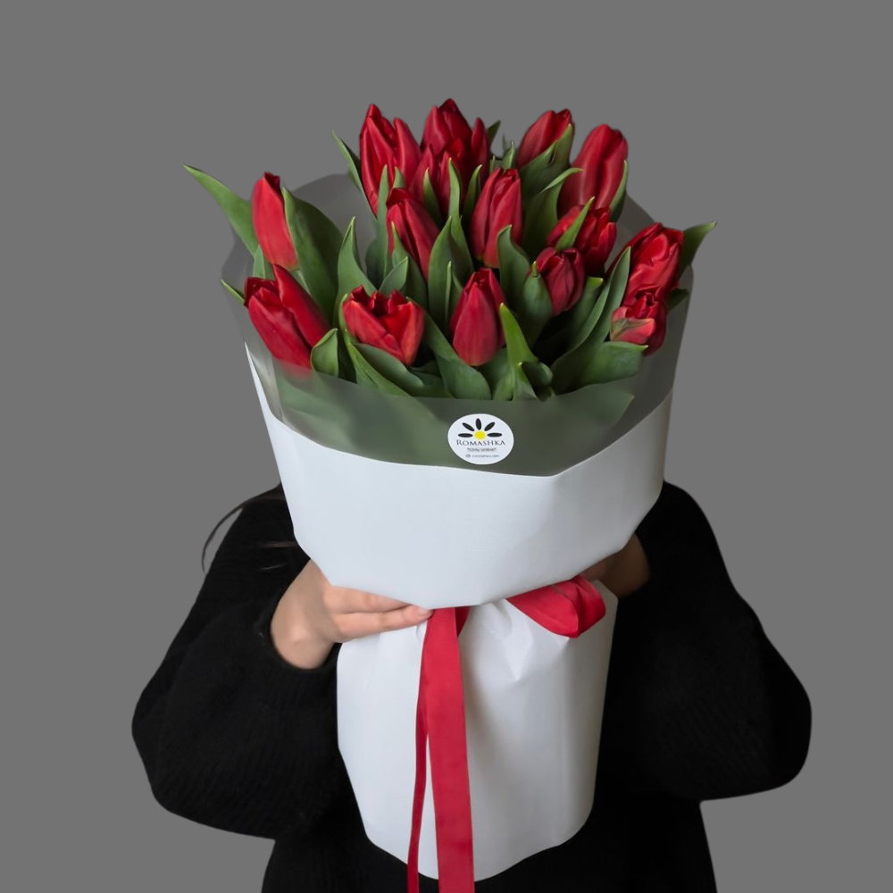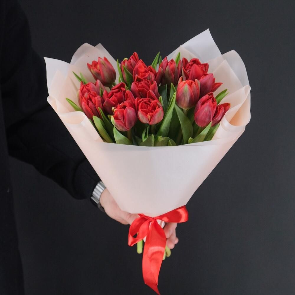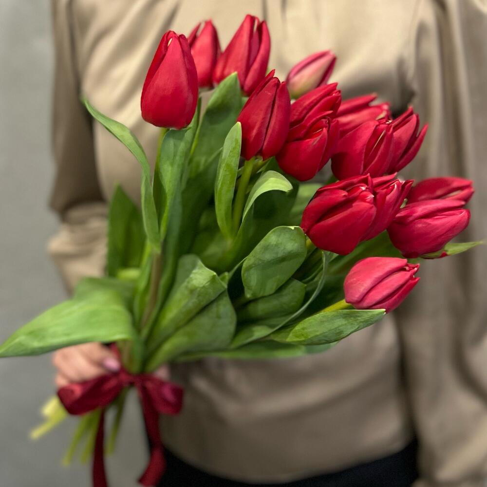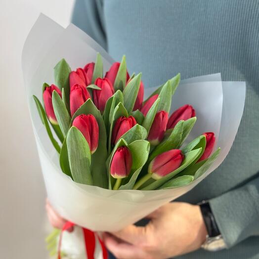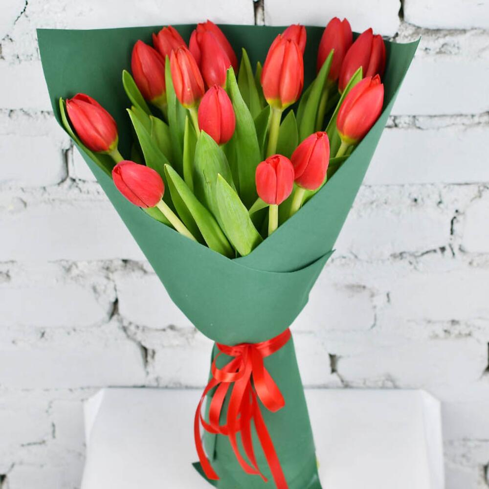 15 красных тюльпанов