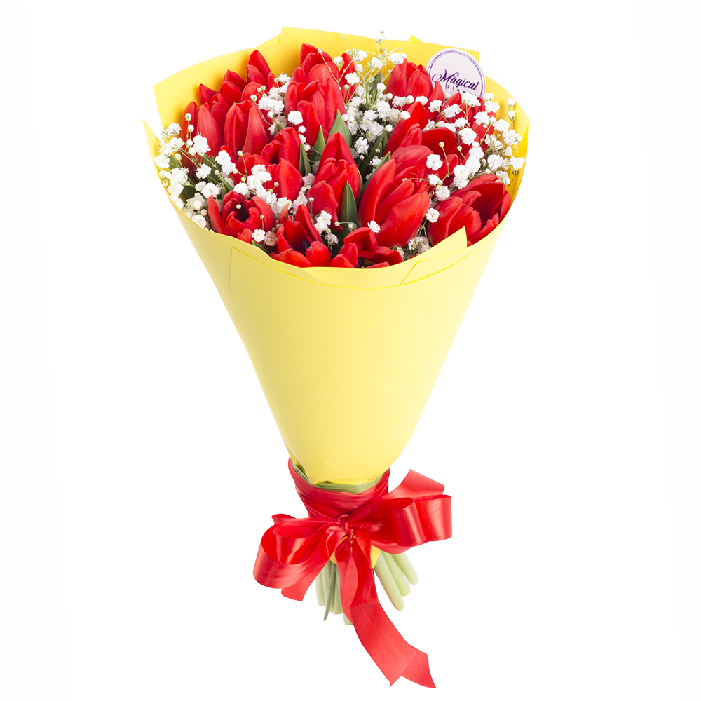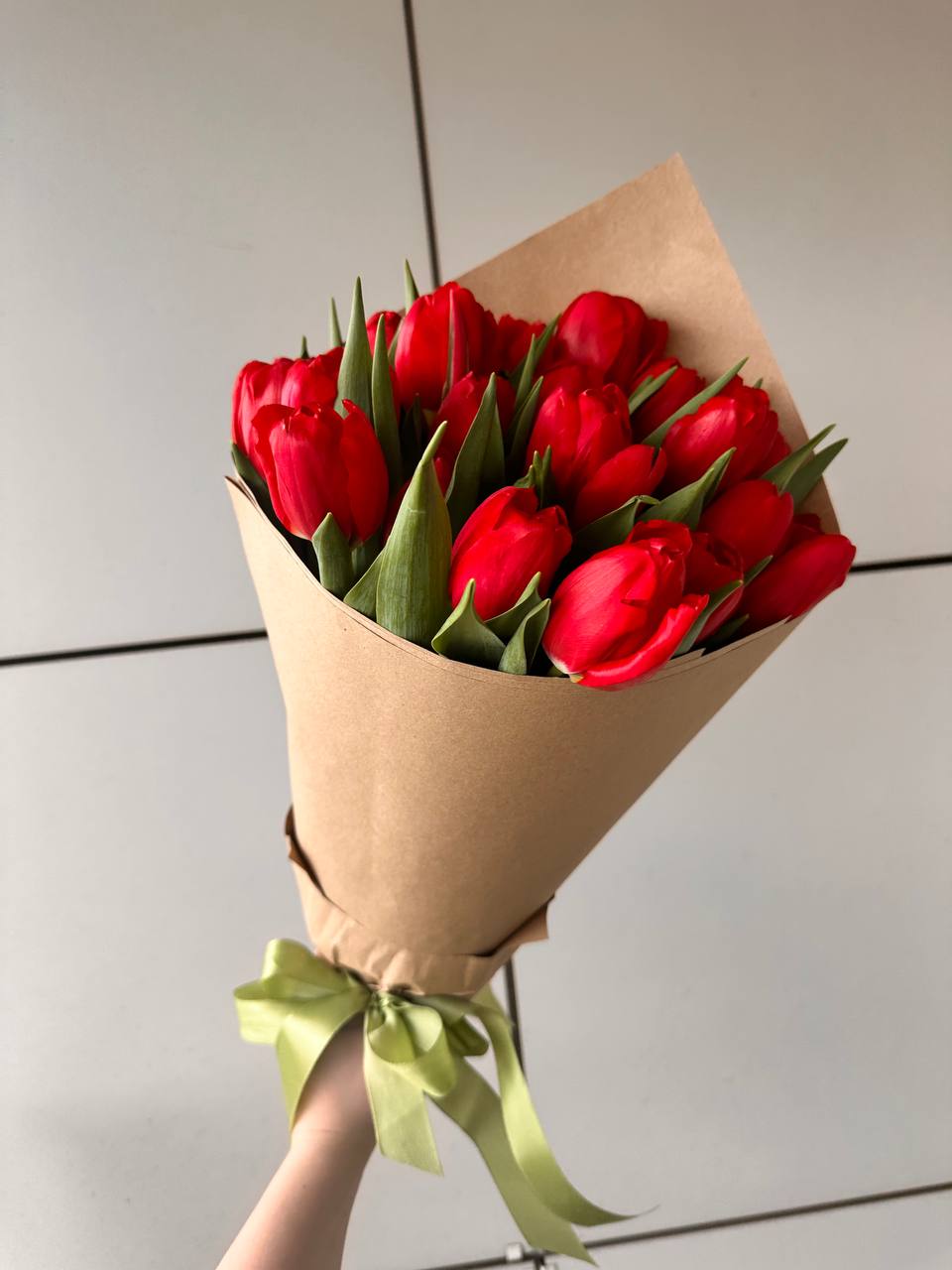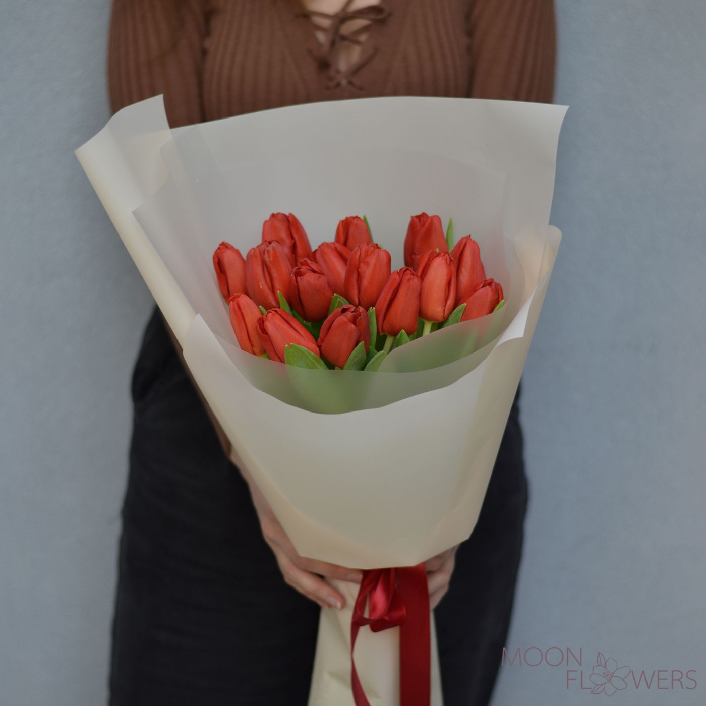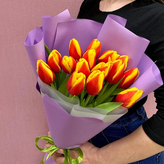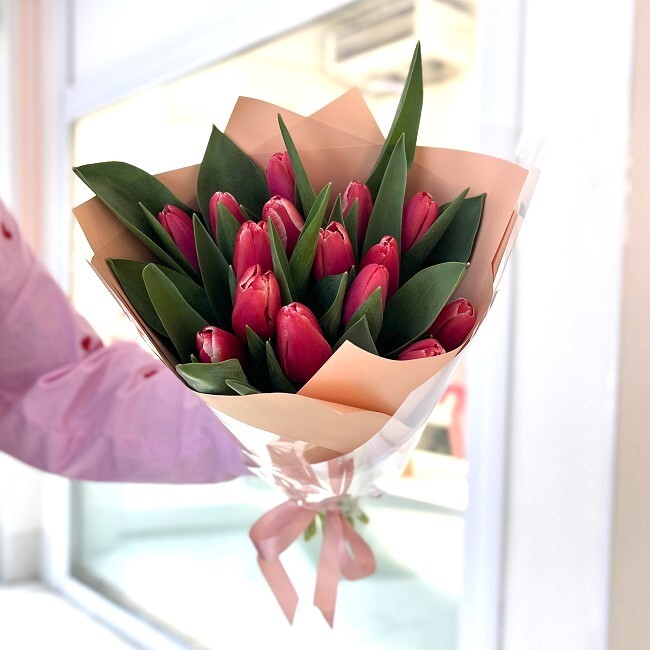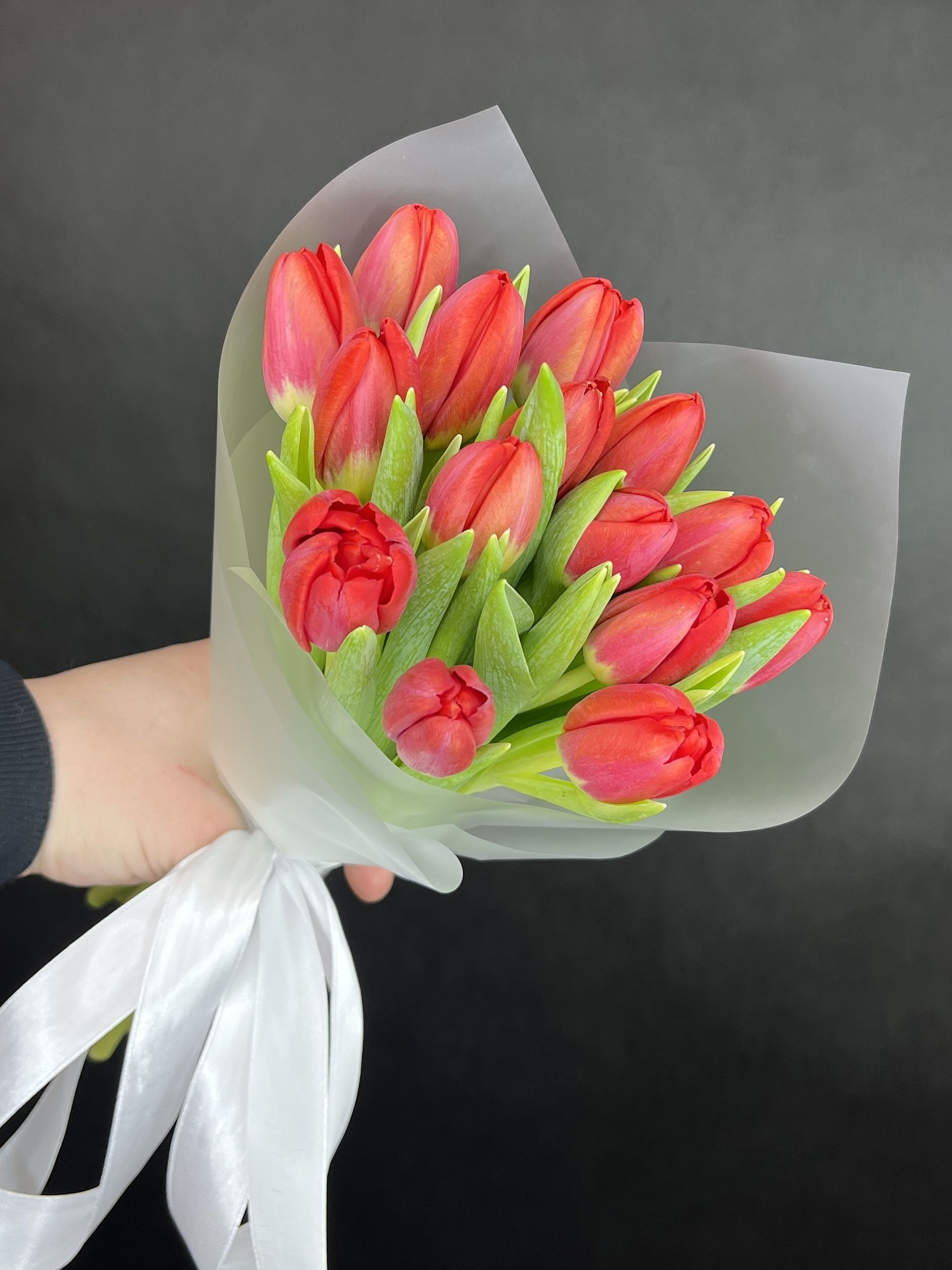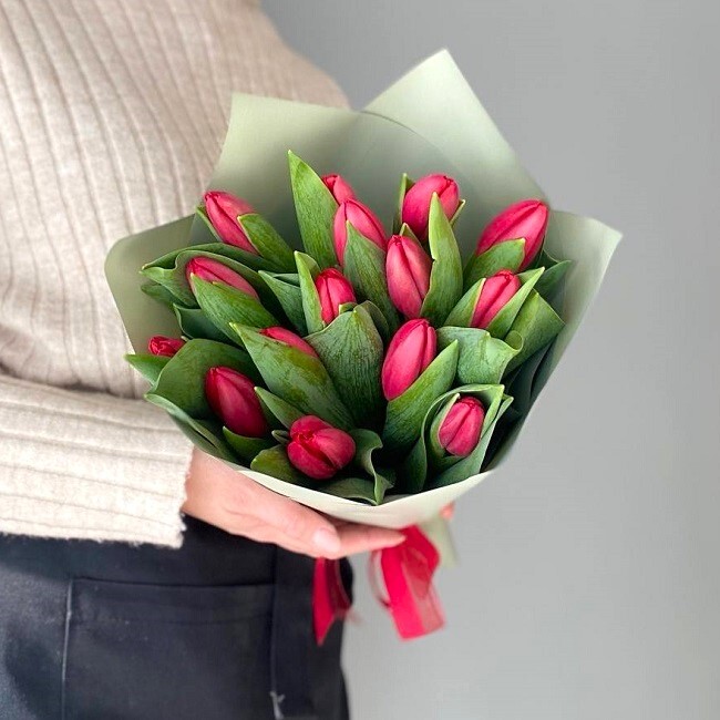 15 красных тюльпанов