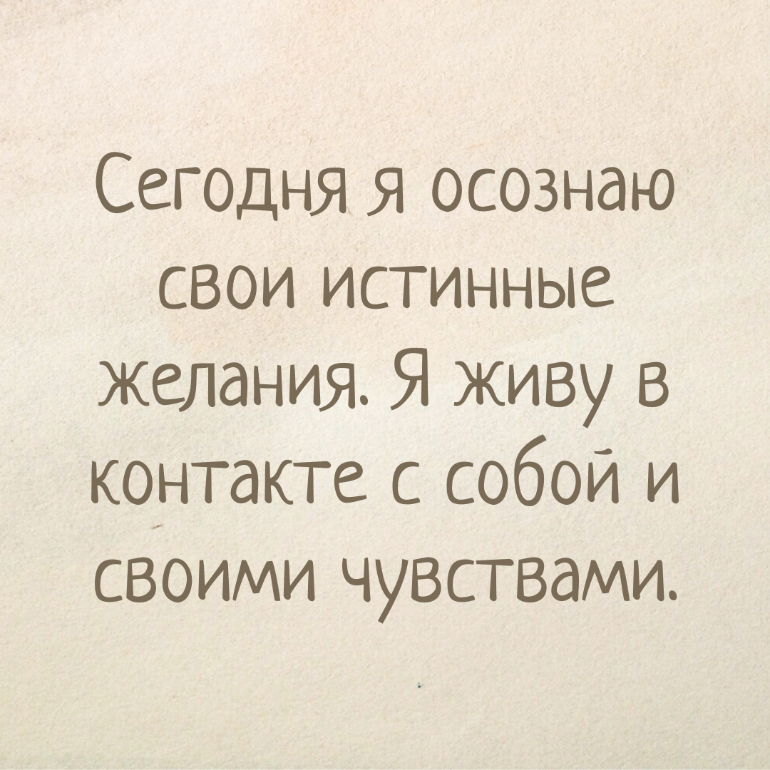 💭 Усиливайте себя позитивным настроем: Я осознаю свои истинные желания. Мои желания сбываются легко и в нужное для меня время. Я живу в контакте с собой и своими чувствами.