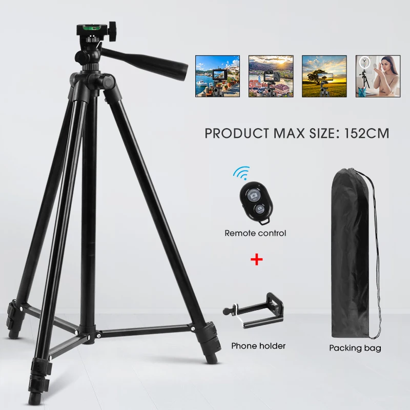 "152cm Black Tripod Extendable Portable Selfie Tripod Support With Remote Shutter And Hangbag For Mobile Phones Travel Photograph" * Buy Now Just For 13$