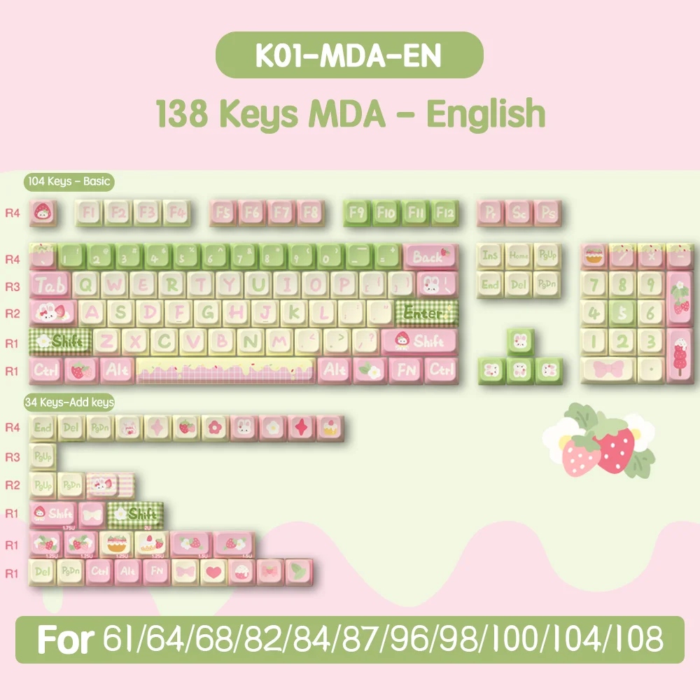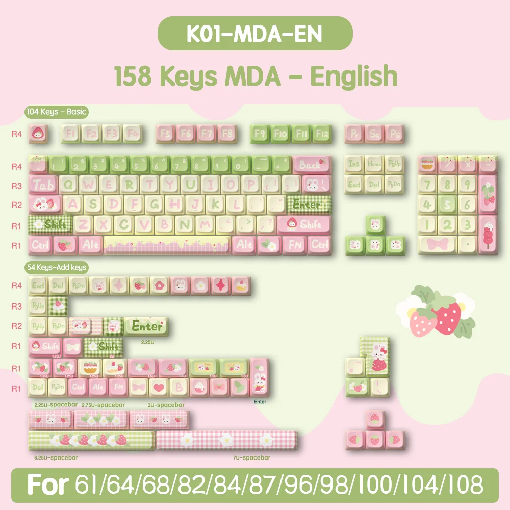 158 Keys PBT Keycaps For Mechanical Keyboard Gaming Keyboard Keycaps Anime Strawberry Milk Bunny Custom DIY MDA Profile Keycap - Купить с бесплатной доставкой