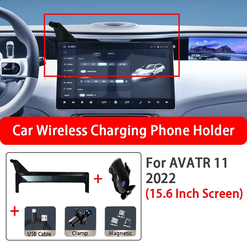 15W Car Wireless Charging Mobile Phone Holder Base Screen Navigation Bracket For AVATR 11 2022 15.6 Inch Screen Car Styling - Купить с бесплатной доставкой