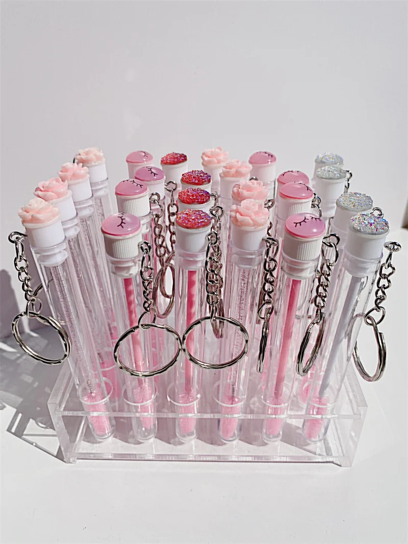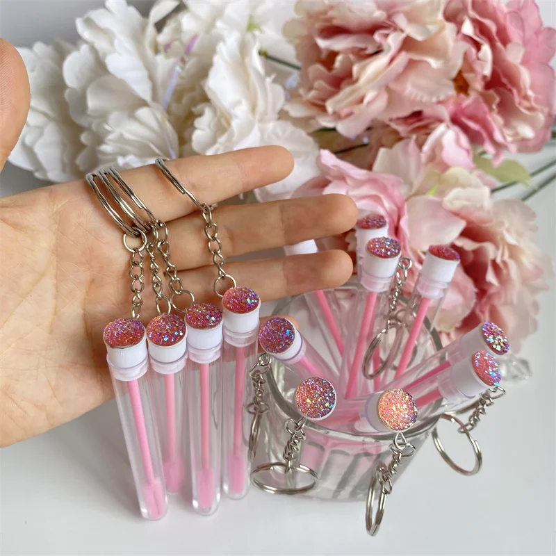 "15pcs Reusable Eyelash Brush Tube Keychain Plastic Portable Lash Comb Spoolie Container Glitter Cils Mascara Wands Keyring" * Buy Now Just For 8$