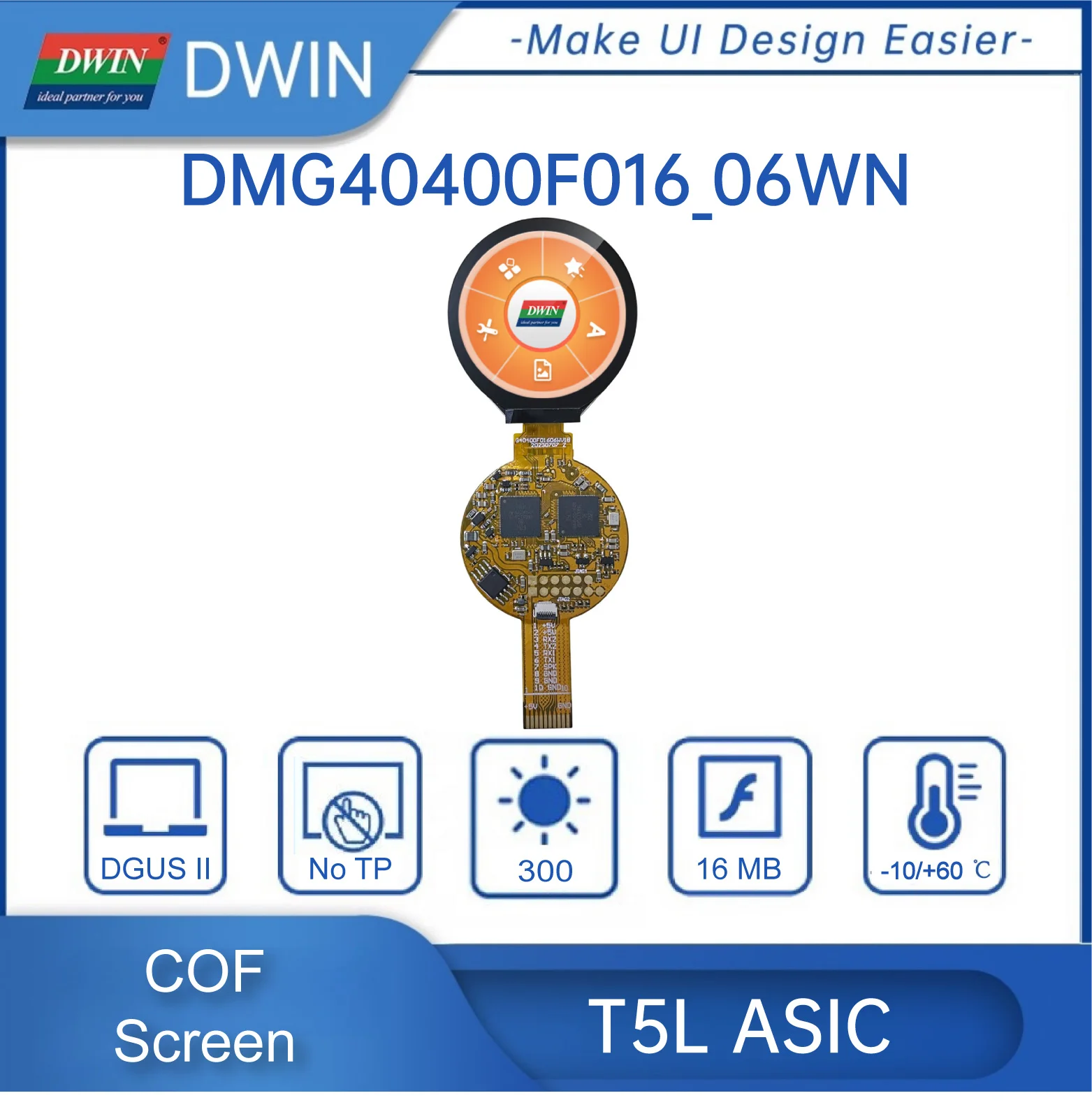 dPjGpXpSHere you can buy 1.6 Inch 400*400 Pixels Resolution 262K Colors COF Structure IPS TFT LCD Display HMI Touch Screen Pane DMG40400F016_06W with free delivery to your post office.