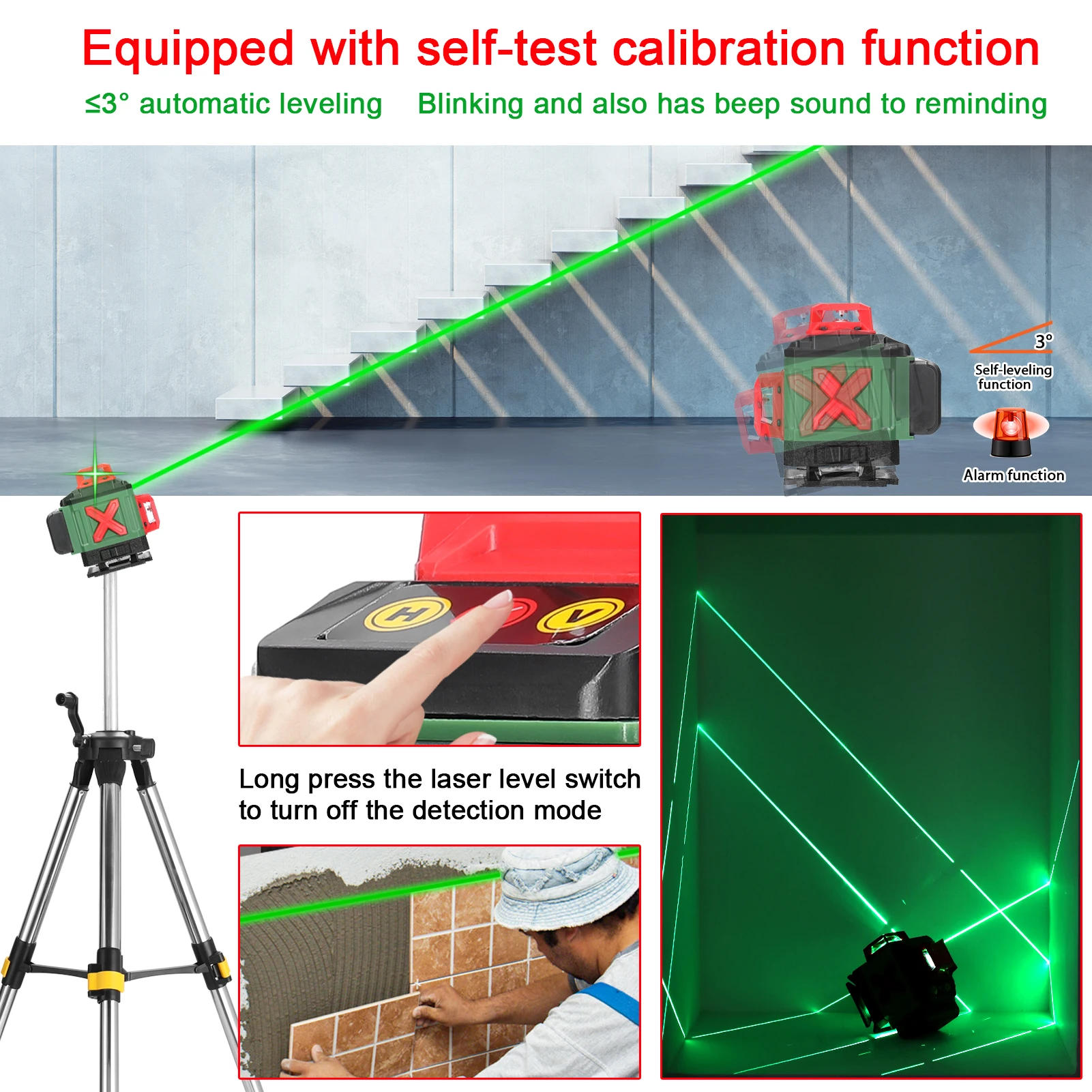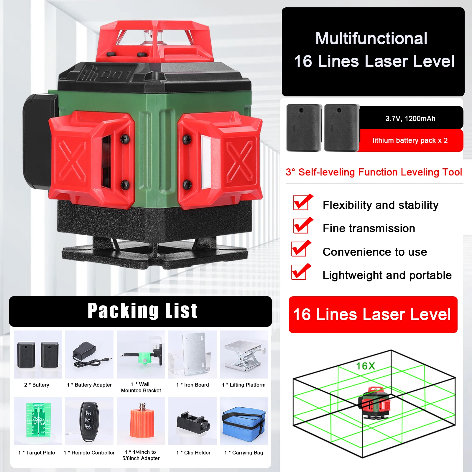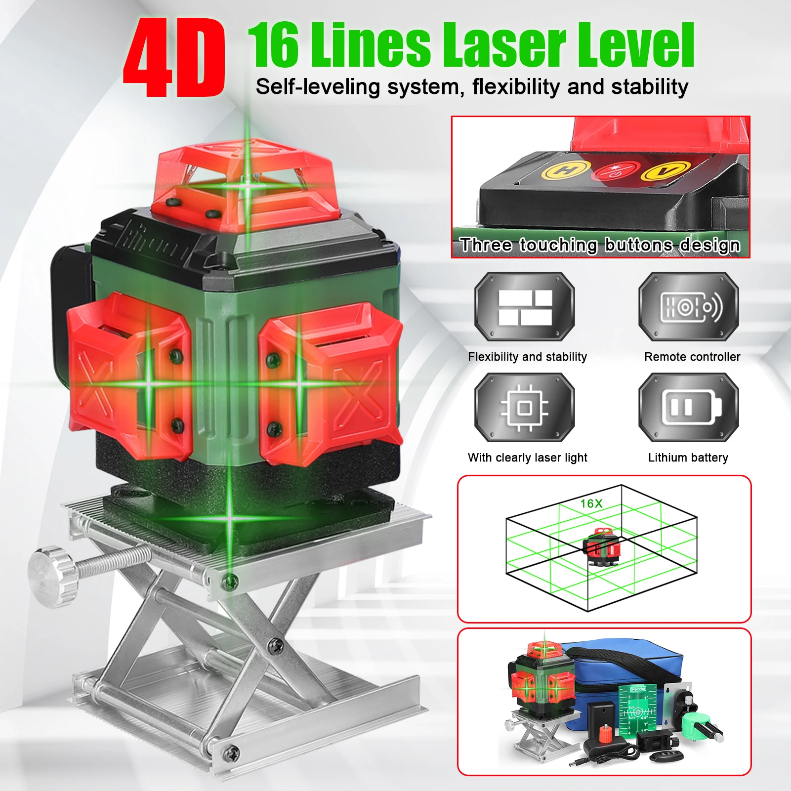 16 Lines 4D Laser Level 3° Self-leveling Function Leveling Tool Omnidirectional Ground Wall Sticker Home Improvement Tools Set - Купить с бесплатной доставкой