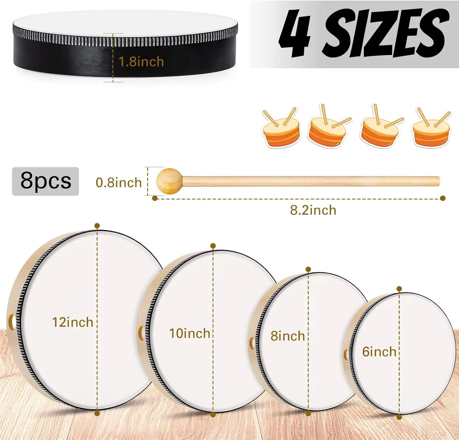 oCAGFquBHere you can buy 16 Pcs Kids Hand Wooden Frame Drum with Drum Stick, 12 Inch 10 Inch 8 Inch 6 Inch Educational Musical Instruments for Adults B with free delivery to your post office.