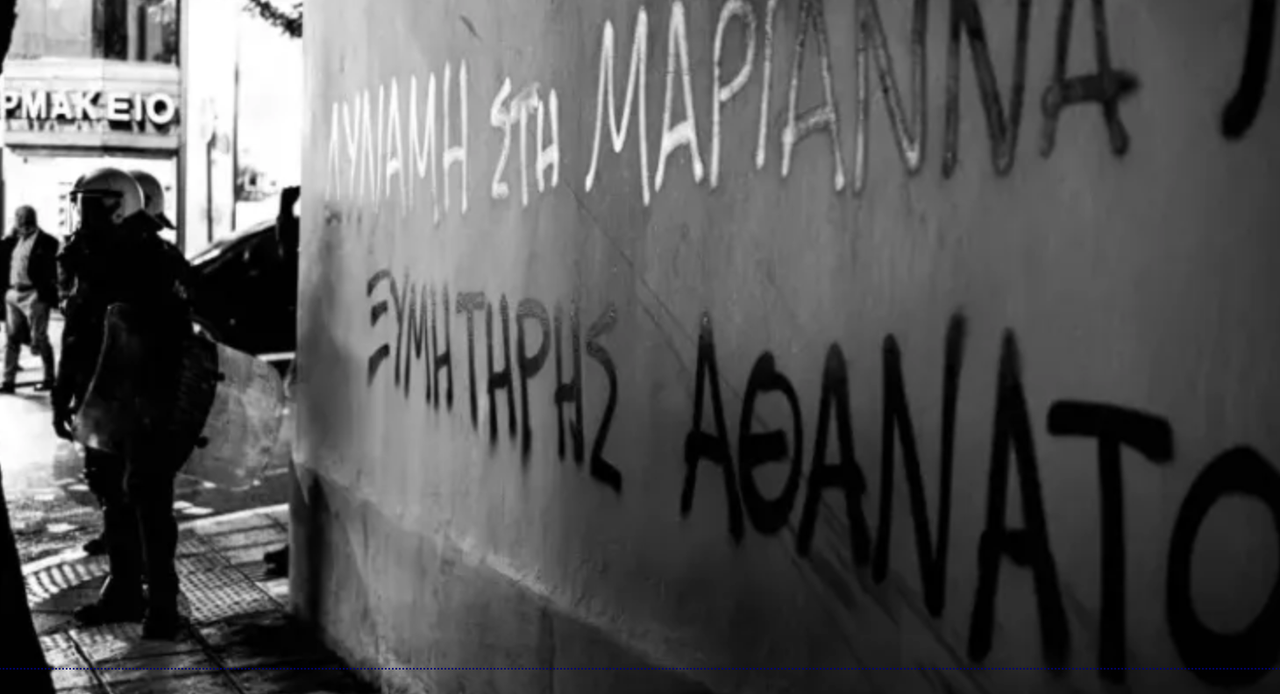 Товарищка Марианна М. задержана и находится под охраной в больнице Евангелисмос, вместе с ней с целью получения показаний там находится весь репрессивный аппарат и антитеррористическая спецслужба. Мы помним случаи пыток товарище:к, которые были схвачены и содержались под стражей в медицинских учреждениях и там подвергались физическому насилию через медицинские практики, когда использовалось их тяжёлое физическое, эмоциональное и психическое состояние. Такие действия государственной власти очевидно являются пыткой.