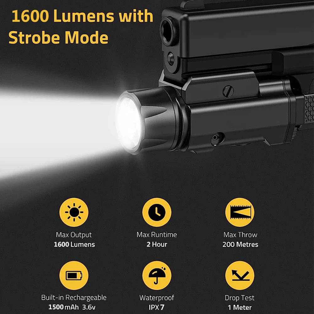 HiwGXfZmHere you can buy 1600 Lumens Tactical Weapon Gun Light USB Magnetic Rechargeable LED Flashlight Strobe Compact Pistol Light for Airsoft Hunting with free delivery to your post office.