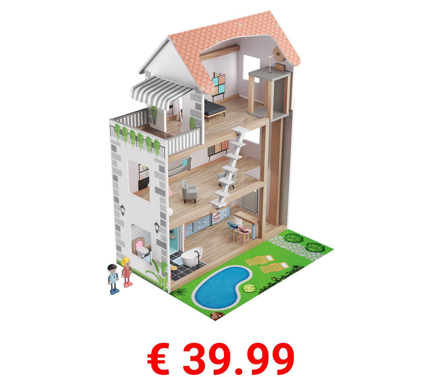 € 39.99 Playtive Puppenhaus aus Holz