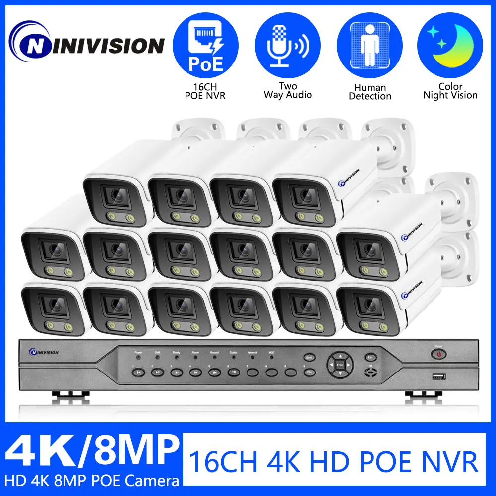 16CH POE NVR 4K 3.6mm Wide-Angle CCTV Security Camera System 8MP Color Night Vision Two-Way Audio Camera Video Surveillance Set - Купить с бесплатной доставкой