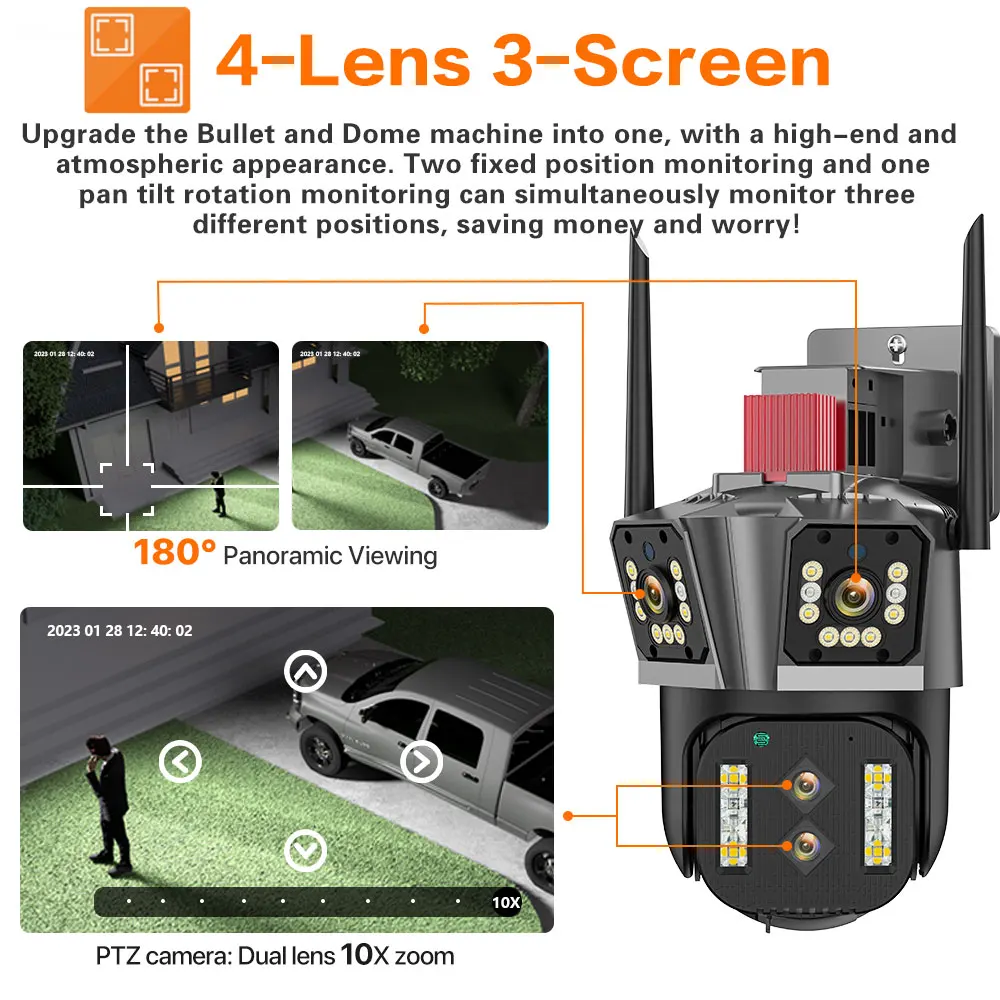 GxcvaPbksHere you can buy 16MP 8K IP Camera 10X Zoom Outdoor Four lenses Three-Screen PTZ WiFi Camera Security Protection CCTV Color Night Vision Cam 4K with free delivery to your post office.