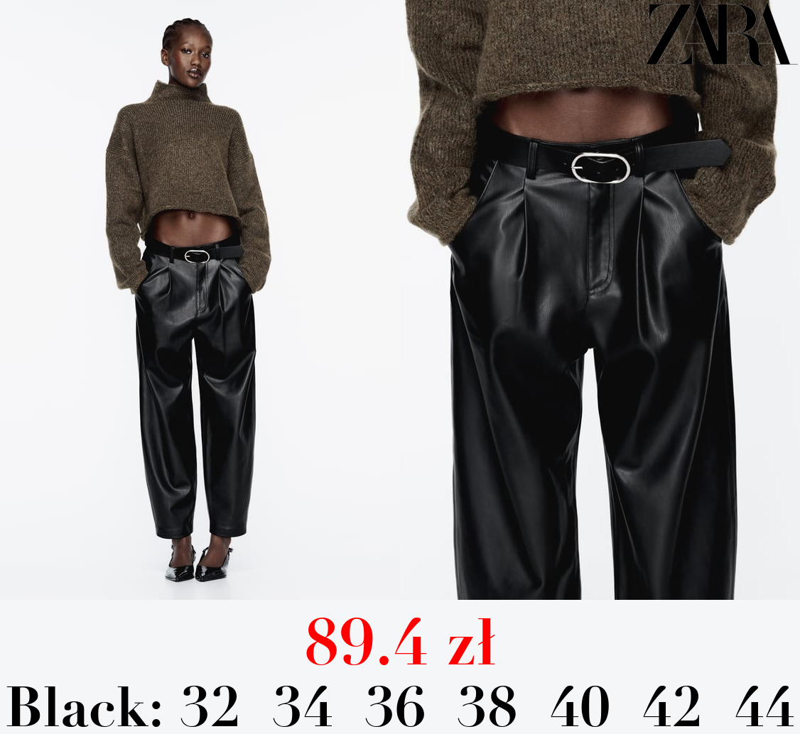 89.4 zł STRAIGHT-LEG HIGH-WAIST LEATHER EFFECT TROUSERS