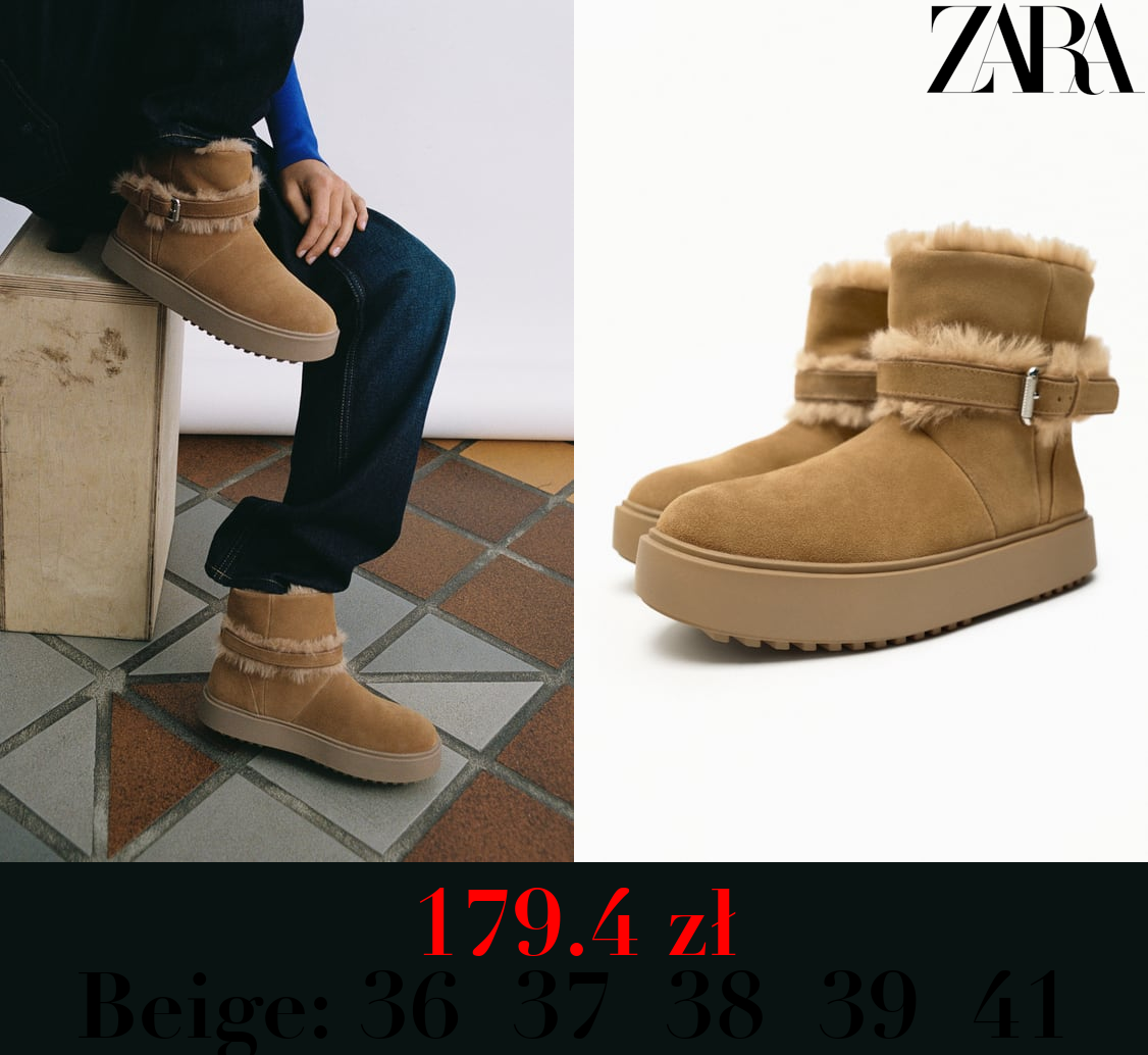 179.4 zł FLAT LEATHER ANKLE BOOTS WITH FAUX FUR