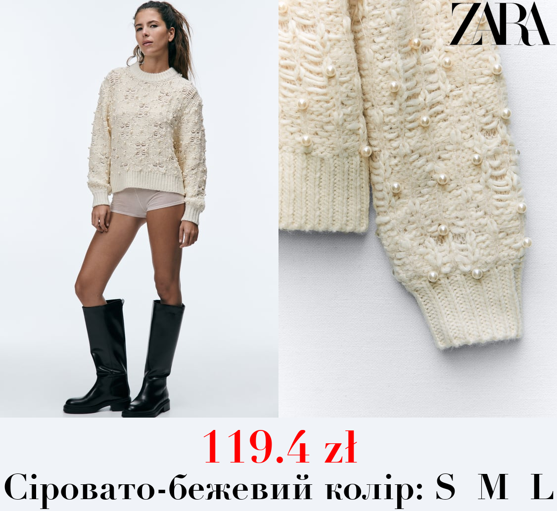 119.4 zł ФАКТУРНИЙ ТРИКОТАЖНИЙ СВЕТР ЗІ ШТУЧНИМИ ПЕРЛИНАМИ