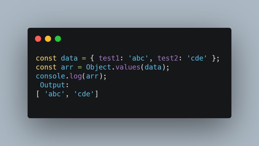 Ushbu funksiya Objectni arrayga aylantirib beradi ( Eslatma: ES8 da qo'shilgan funksiya)