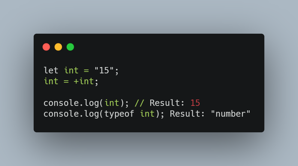 String type ni Numberga o'zgartirish Demak stringdagi sonni oldiga + ishorasini