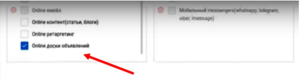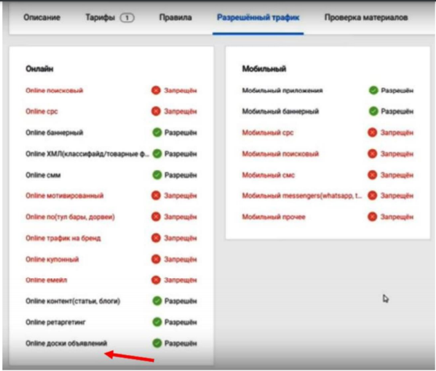 При создании рекламной компании, выбираем разрешенные способы привлечения трафика (нас интересует трафик с досок объявлений).