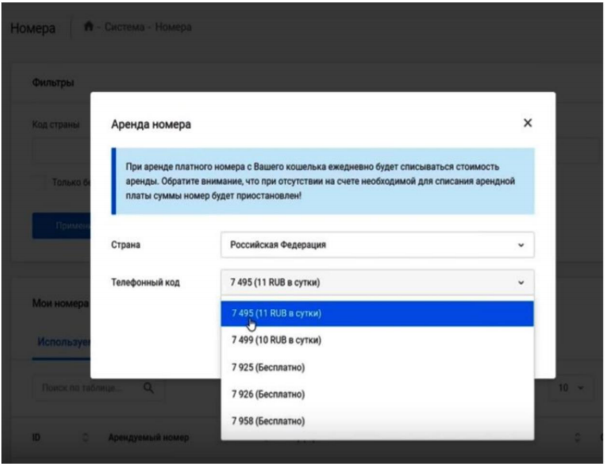 Помните, мы ранее арендовали с вами номер телефона - выбираем его здесь.
