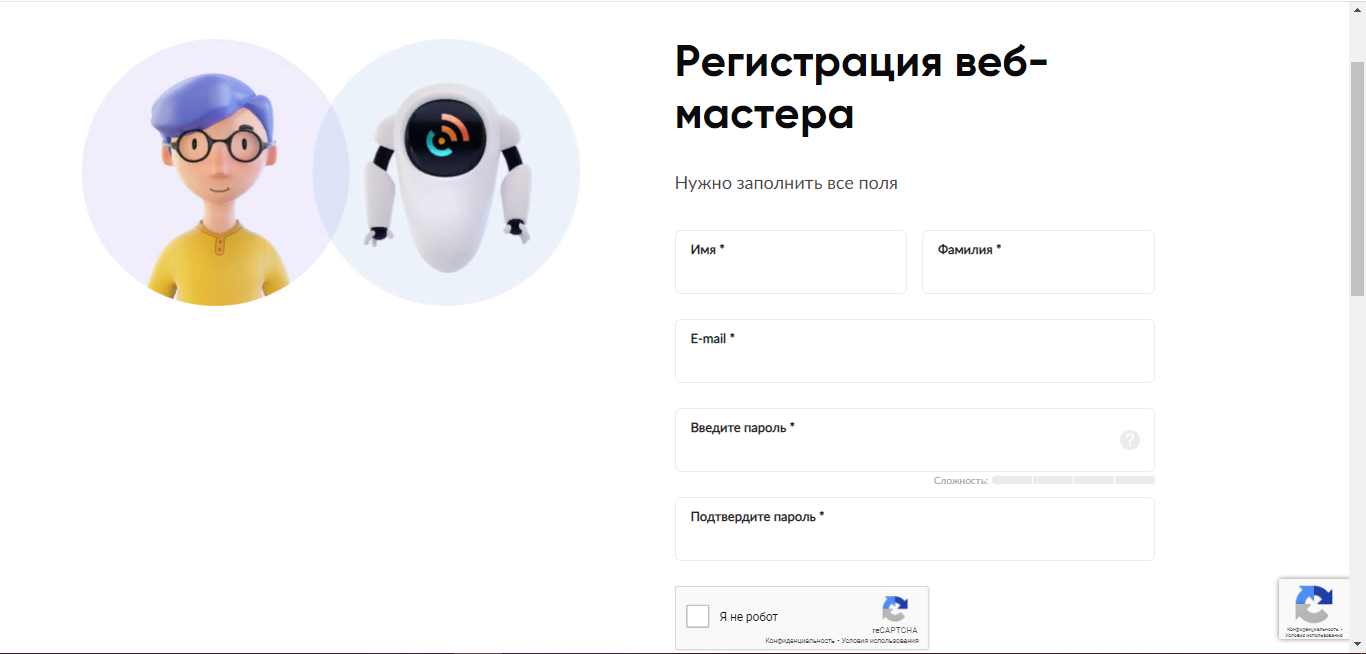 При регистрации указываем, что мы Веб-мастер