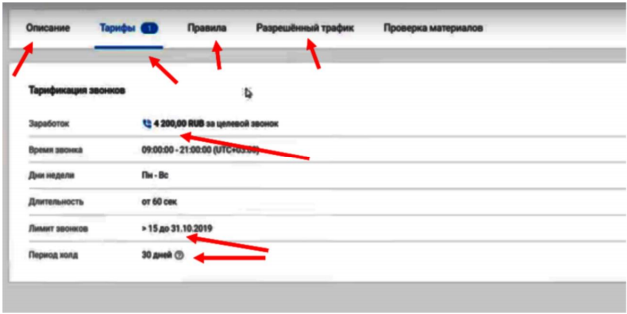 Наша задача выбрать офферы либо средних рекламодателей, либо жирных крутых. Это может быть недвижимость и автомобили. По желанию можете взять страхование и кредитование. При выборе оффера обязательно смотрите на лимит звонков, разрешенных на данный период времени.