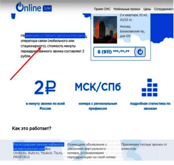 Как это работает? Регистрируем личный кабинет на сайте СМС активатора, на виртуальные номера который выдает этот сервис, размещаем объявления с указанием виртуального номера и устанавливаем переадресацию на свой номер (номер из рекламной компании в партнерской программе) принимаем теплые звонки от клиентов. Объясню более подробно: Регистрируйтесь на таких площадках, как Авито, Циан или других досках объявлений. Размещаете объявление по тематике выбранного вами оффера. В объявлении указываете номер для переадресации звонков (номер вы купили на сайте СМС активаций). Заинтересованные люди звонят на этот номер – происходит переадресация на номер, который вы прикрепили в партнерской программе Marketcall и за каждый целевой звонок вам выплачивается вознаграждение. Если у вас нет денег на покупку номера для переадресации звонков – вы можете использовать свой номер телефона.